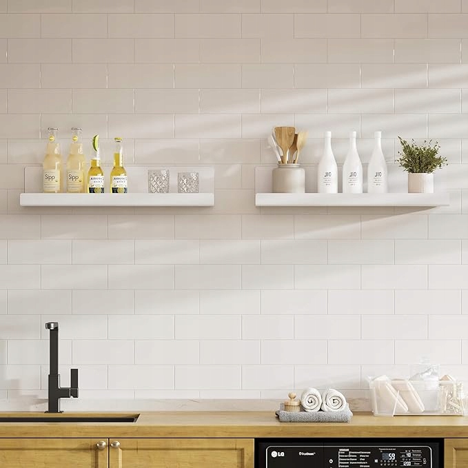 Стінна стійка Loftplus, без буріння, набір з 4 штук, білий, акрил, настінні полиці для книг та фотографій, прикраса будинку, для кухні, ванної, офіс, вітальня (32 х 10 х 8 см)