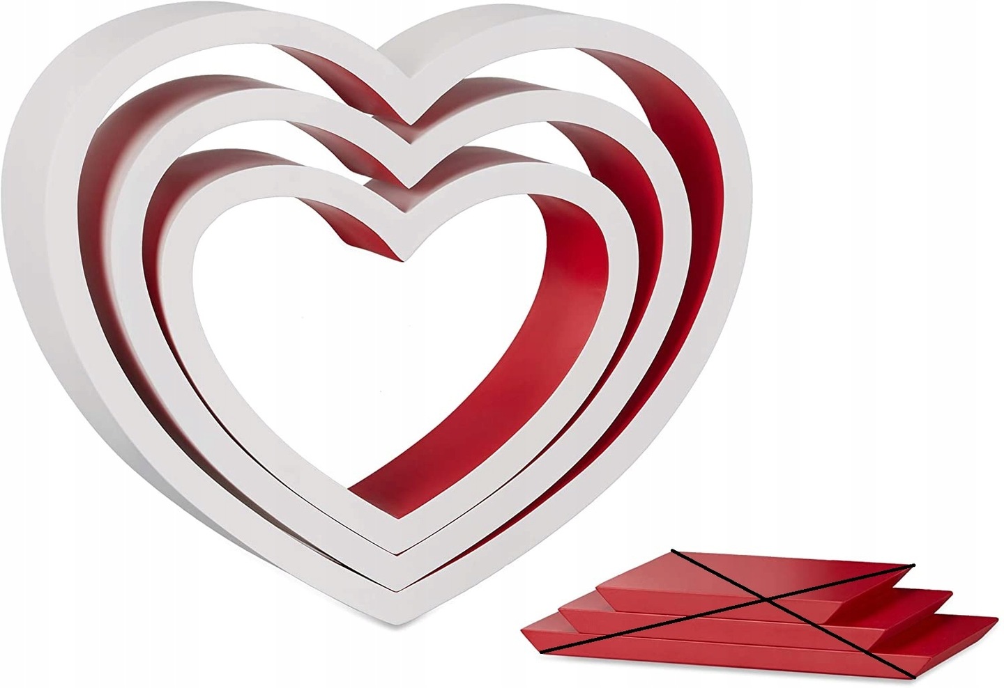 - З серцем: романтичні настінні полиці у формі серця - Декоративні полиці в наборі з 3 шт. - У 3 різних розмірах