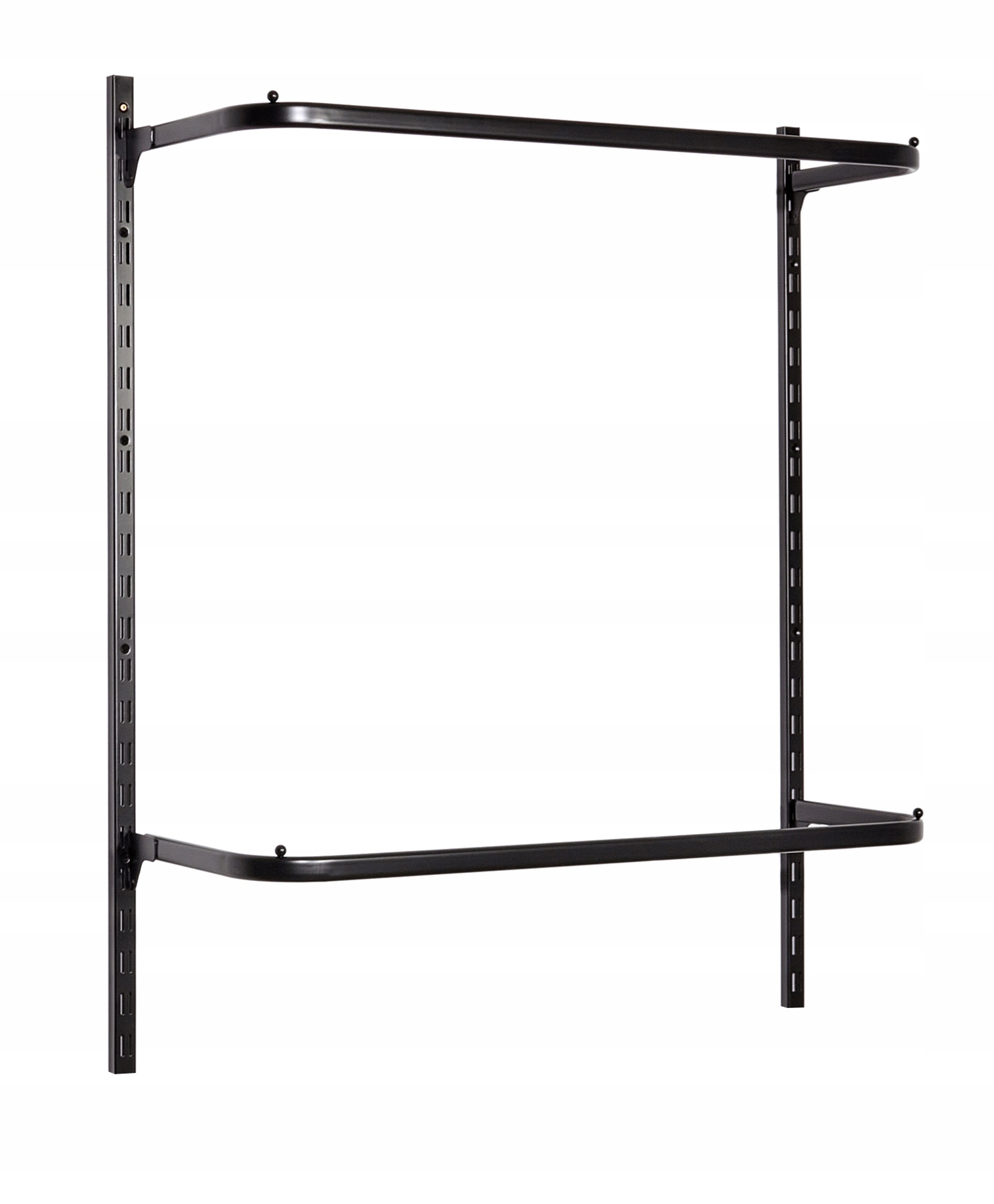 - Єдиним постійним елементом системи є настінні рейки, які мають бути міцно прикріплені до стіни. Усі інші елементи, такі як рамні вішалки, поперечини, вішалки для одягу чи підставки для полиць монтуються шляхом вставлення їх у отвори, які розташовані по всій довжині рейок. Для цього нам не потрібні жодні інструменти, тому ви можете будь-коли змінити макет.