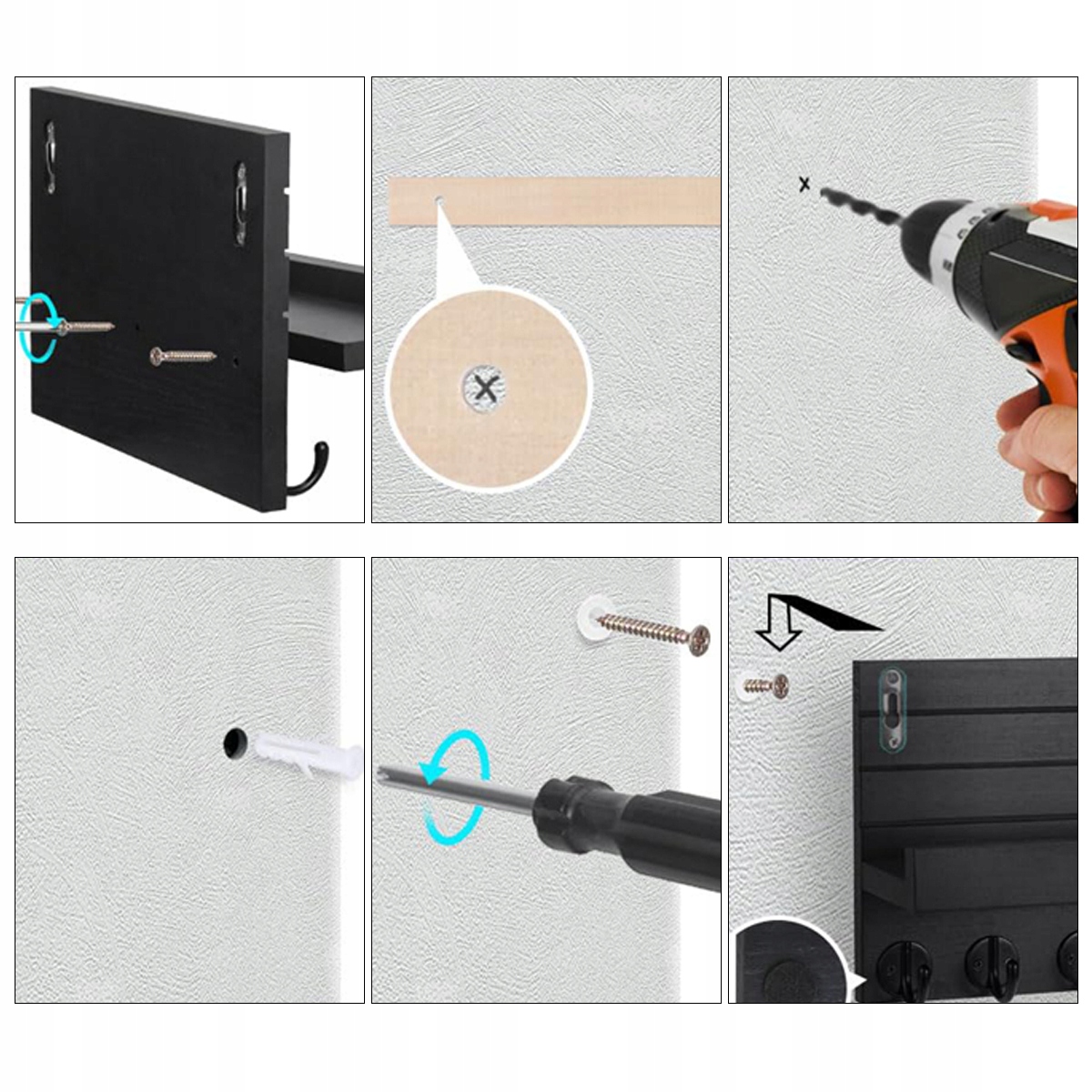 🏡 настінна полиця з 5 гачками та верхньою лоток для зберігання натуральної деревини в стилі ретро ›