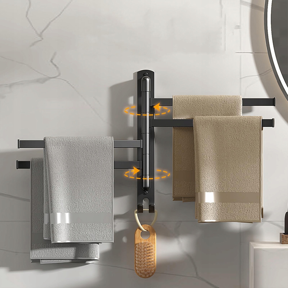 ВІШКА ДЛЯ РУШНИКІВ ДЛЯ ВАННОЇ КІМНАТИ, РЕГУЛЬОВАНІ РУЧКИ, ЧОРНИЙ