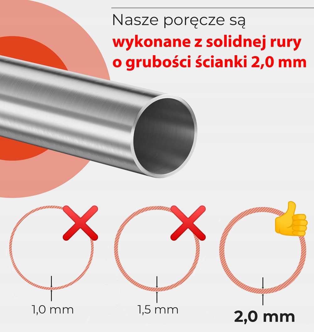 - Діаметр поручня: Ø42,4 x 2,0 мм