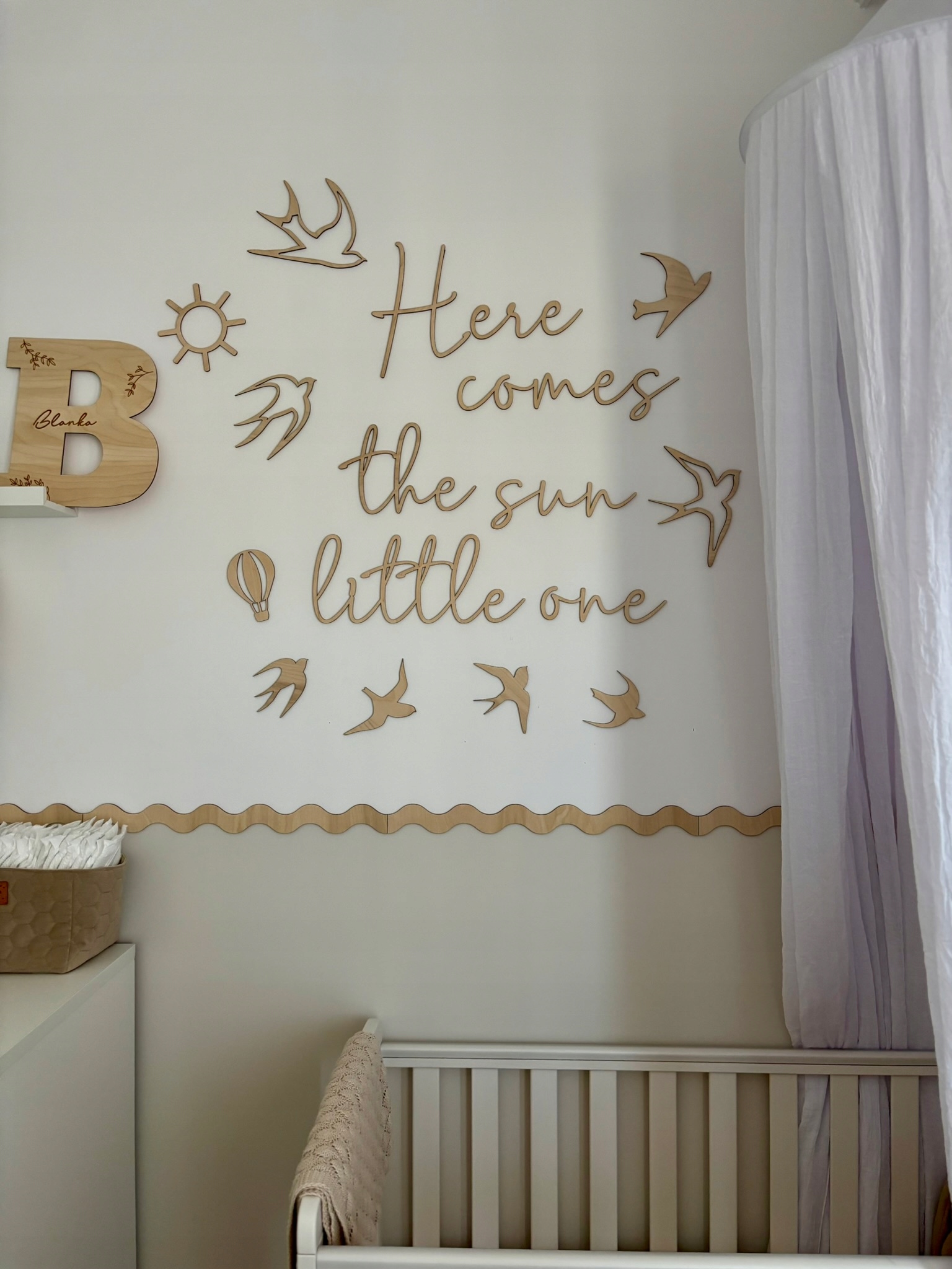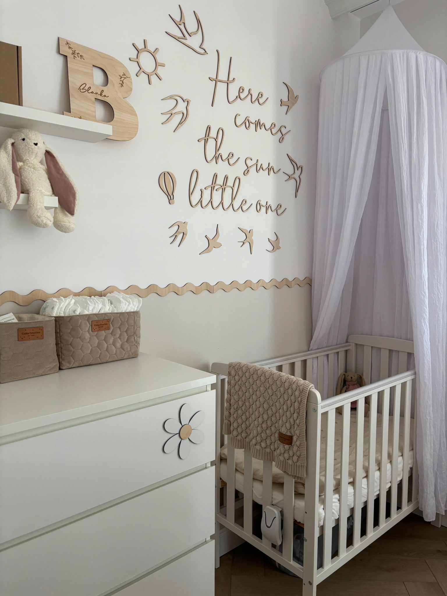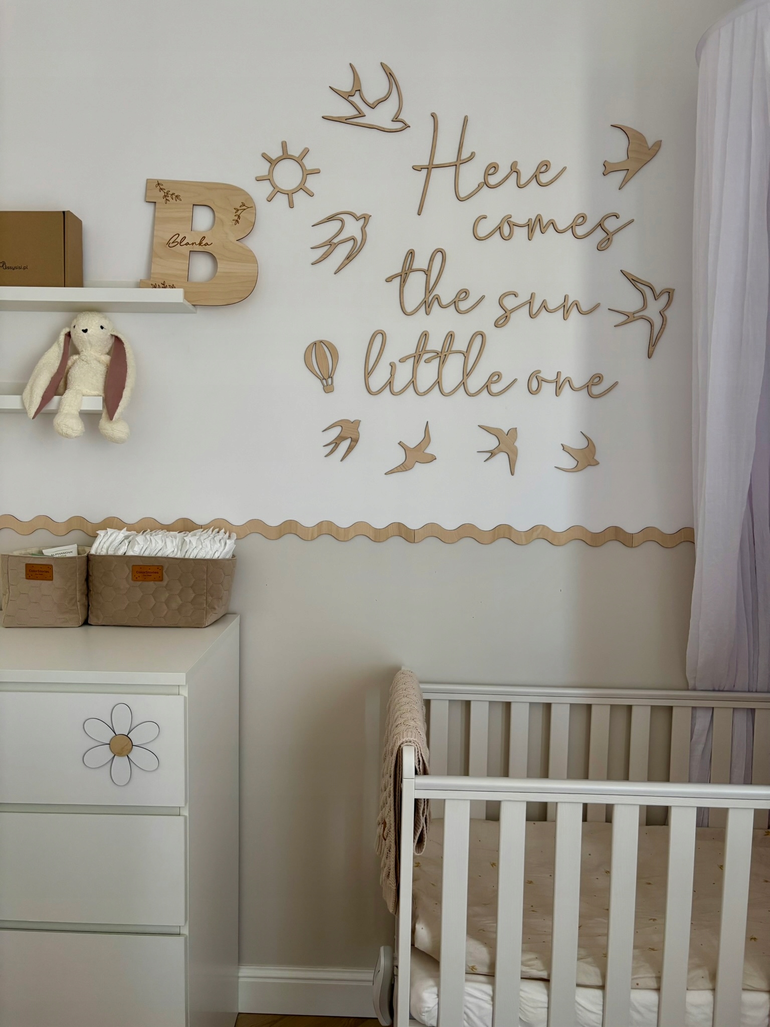 Ідеальний акцент для кімнати дитини у вигляді дерев’яних надмірностей. Дуже модний, який розпочне кімнату вашої дитини. Легко приклеїти на стіну.