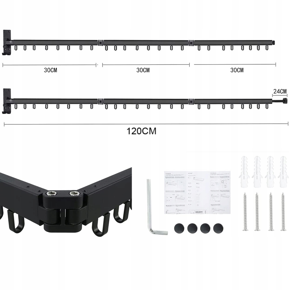 - Регульований на 360° опорний кронштейн, унікальний дизайн дозволяє повісити більшість одягу та може бути легко встановлений на різних стінах або кутках у приміщенні та на вулиці.