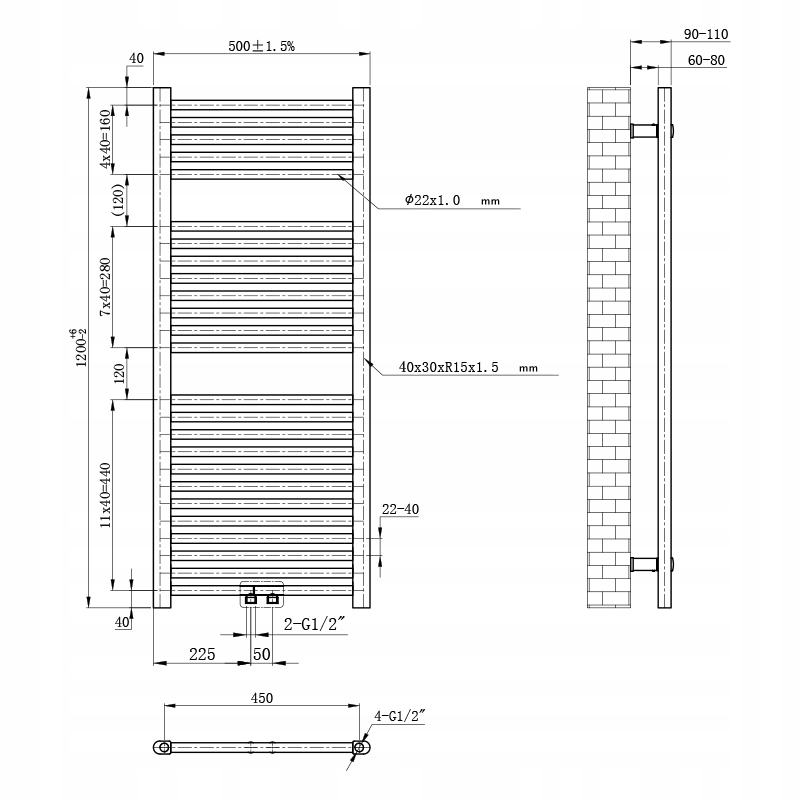 ☑ можливості гнучкої складання - Завдяки чотирма з'єднанням G1/2 "та 45 см відміщенням та двома з'єднаннями G1/2 та 5 -см, що проміщуються в нижній середній частині, радіатор може бути встановлений як зліва, так і вправо, що робить відповідність існуючій установці.