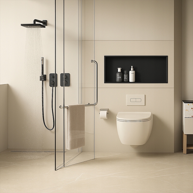 ✅ Маскуючий комір - ретельно закінчений край гарантує естетичне з'єднання полиці зі стіною. Комір полегшує складання та покращує візуальний кінцевий результат, незалежно від типу плитки.