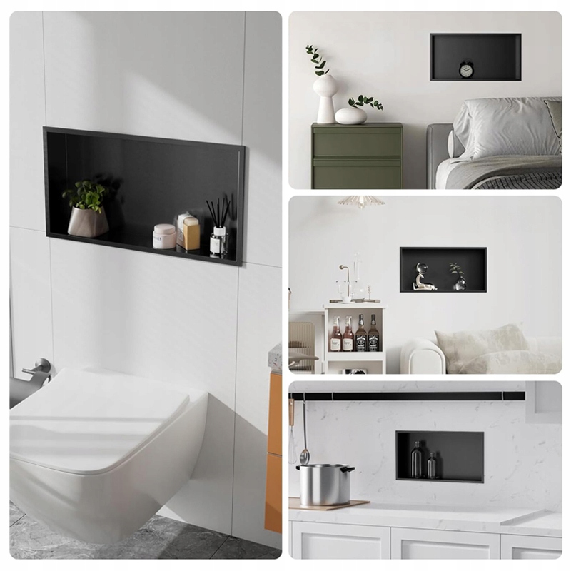 Полиці для поглиблення найчастіше використовуються у ванних кімнатах - у душової зони, над ванною або в раковині, але завдяки естетичному обробці вони також добре працюють на кухні, вітальні чи гардеробі. Це рішення, яке поєднує комфорт з естетикою - без необхідності встановлювати додаткові елементи на стіні.