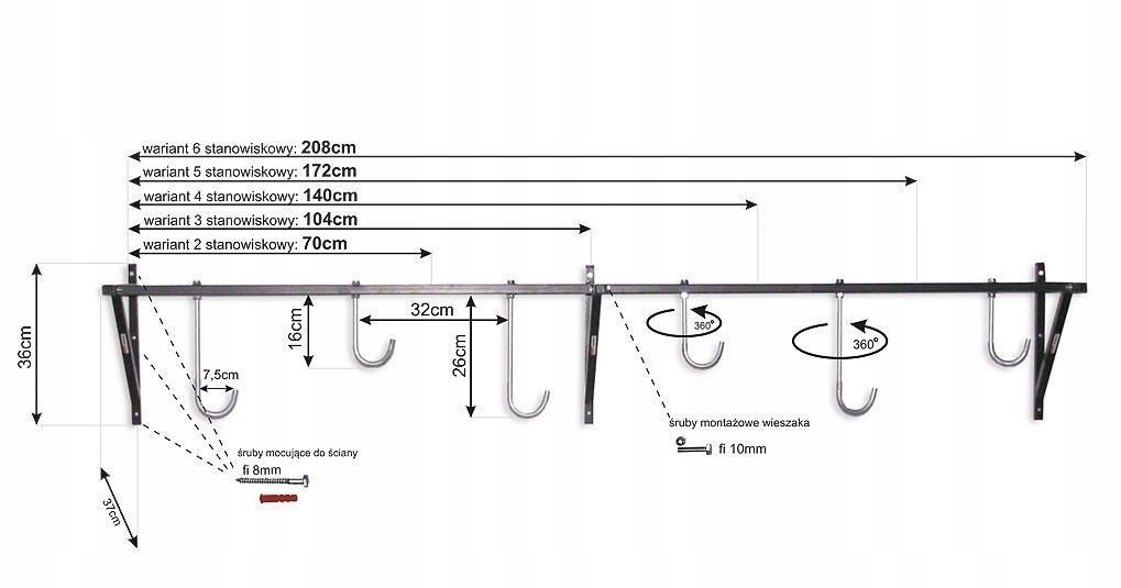 Вішалка CRIS-5 - це практичне та міцне рішення для зберігання до п'яти велосипедів одночасно. Завдяки конструкції зі сталевого профілю 20×20×1,5 мм і кріпленню за допомогою 9 шурупів діаметром 8 мм забезпечує стабільність і безпеку використання. Гаки з прогумованим покриттям захищають раму від подряпин, а можливість обертання на 360° і використання гаків двох довжин дозволяють зручно підвішувати велосипеди на різній висоті, без ризику торкання елементів.
