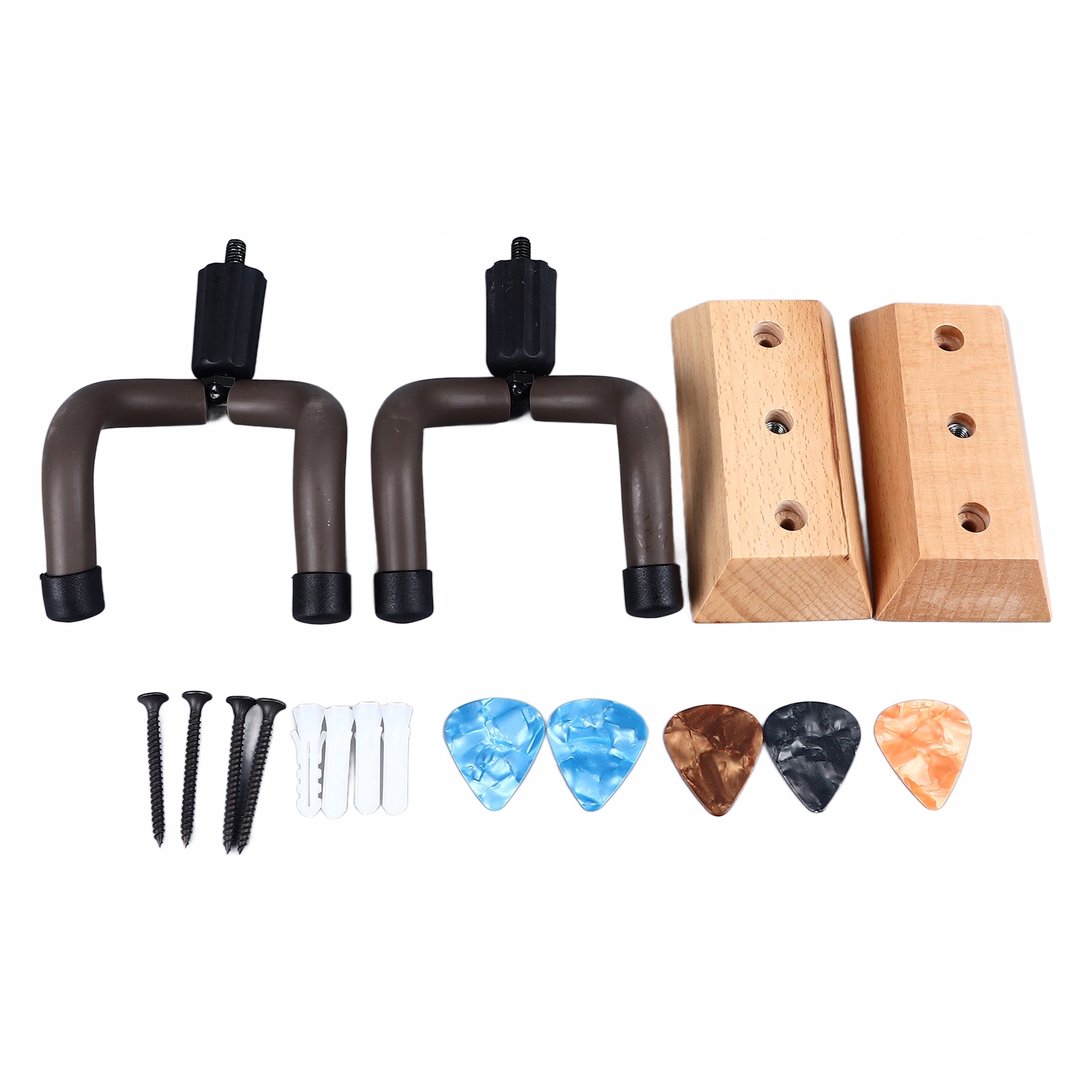 Настінна вішалка для гітари Багатофункціональна настінна вішалка з масиву дерева та металу з 5 медіаторами для бас-гітари укулеле, 1 шт.