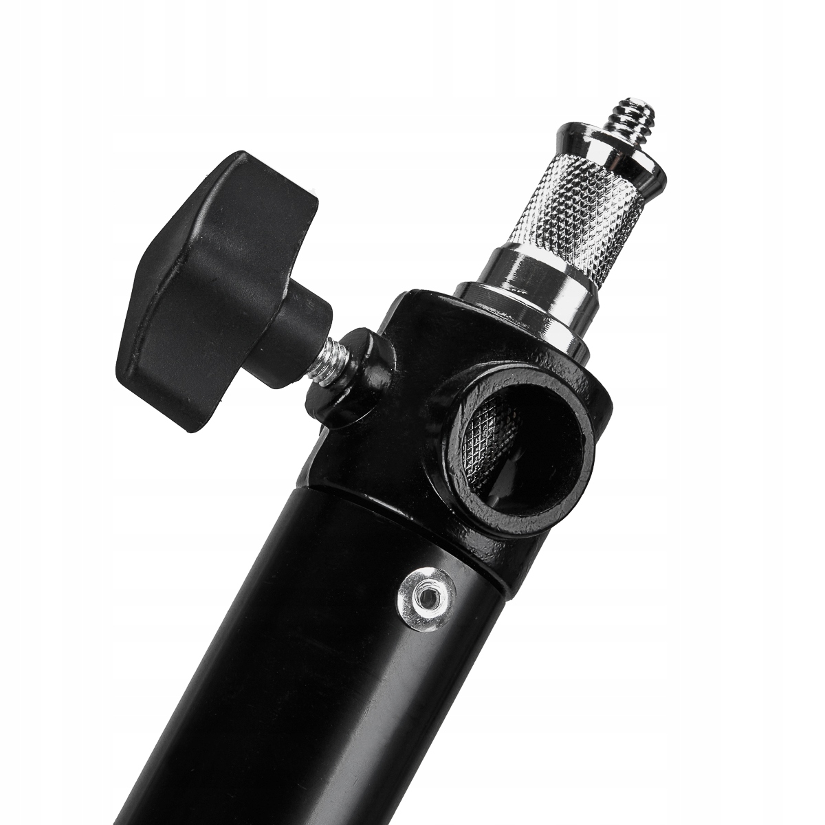 Телескопічна конструкція дозволяє регулювати довжину руки від 73 до 131 см. Регулювання кута нахилу штатива забезпечує значну свободу рухів по вертикалі і горизонталі, дозволяючи точно направляти освітлення в обраному напрямку. Двосторонній штифт встановлюється в один із трьох отворів, що дає змогу вибрати відповідний рівень освітлення відповідно до ваших потреб.