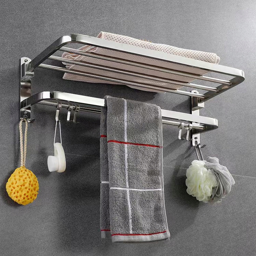 Вішерка для рушників з 2-рівня рушника та 9 гачків рушників (5 гачків для активності), достатньо місця для всієї родини для зберігання або звисання ручок, об'єктів та швидкої сутички. Довжина рушника: 56 см, загальна довжина: 58 см (приблизно 23 дюйма).