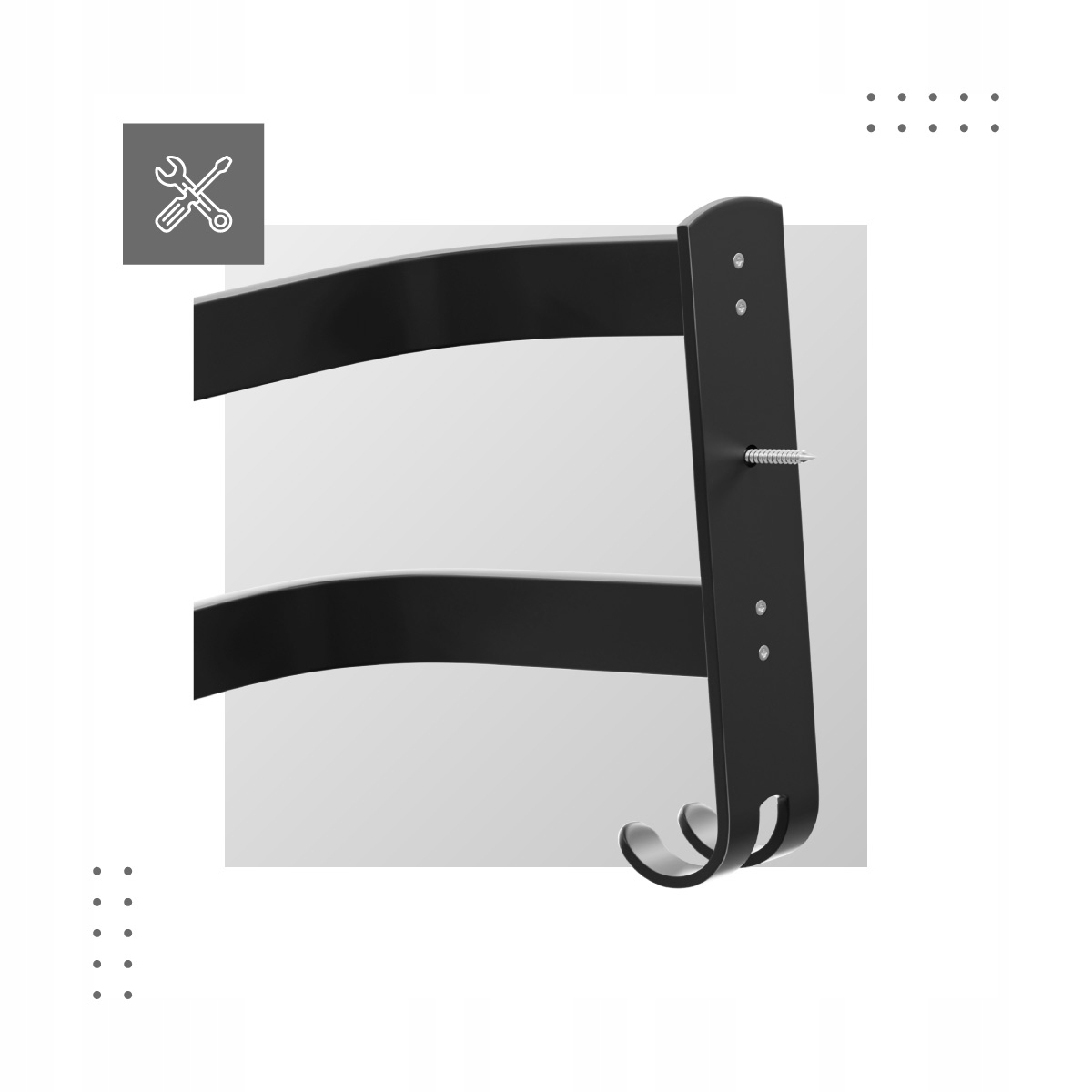 Гвинти та дюбелі для кріплення вішалки входять в комплект і гарантують стійке утримання на стіні. Рівень 2.0 легко витримає вагу навіть змочених водою рушників. Після встановлення вішалка прослужить багато років. У комплект також входять естетичні ковпачки.