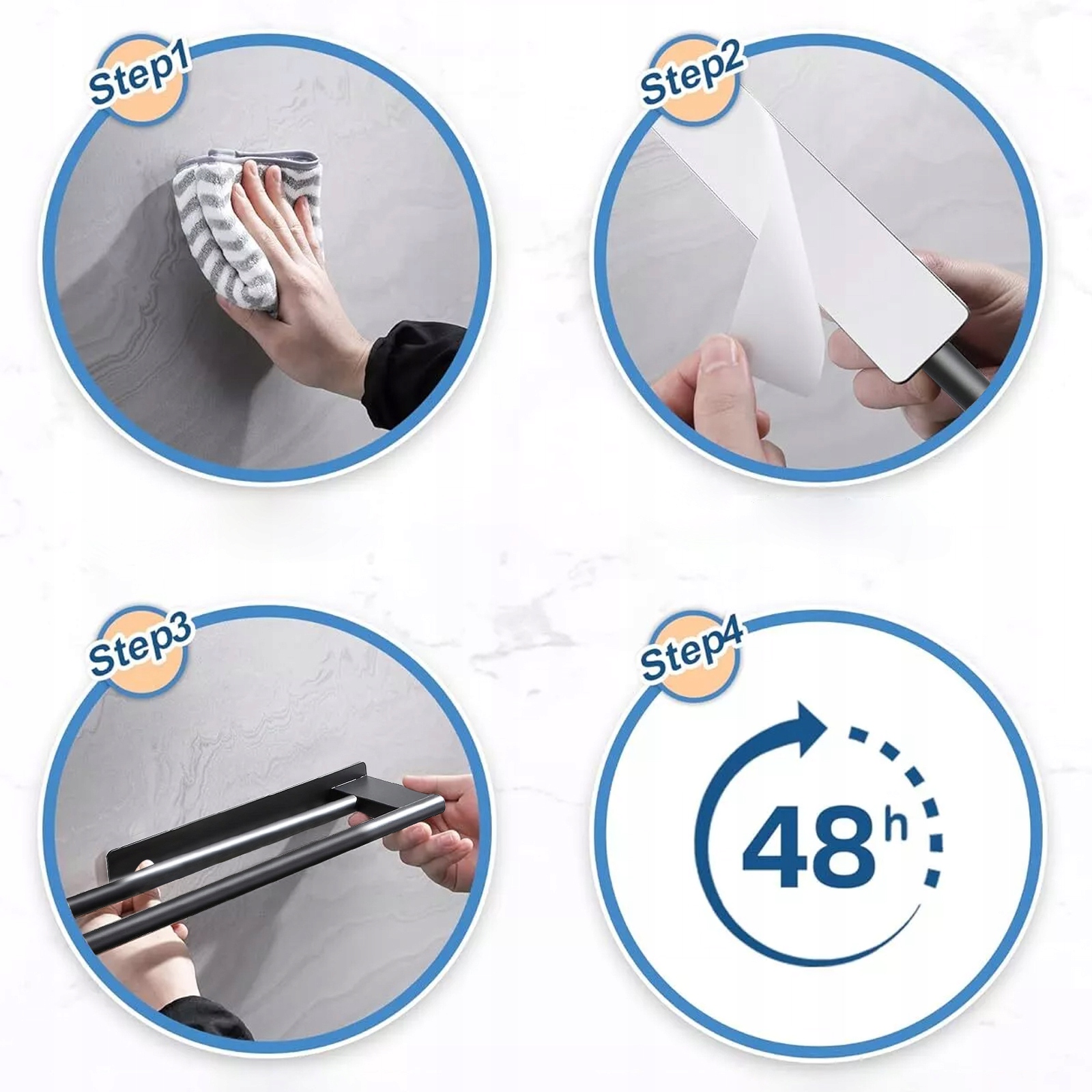 - Ця самознаходяться вішалка для рушників не підходить для стін для шпалери або фарбування. Щоб забезпечити постійне з'єднання, зачекайте 48 годин, перш ніж повісити вішалку.