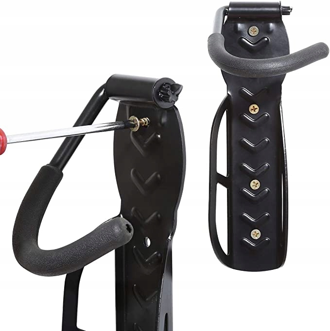 Велотримач характеризується високою міцністю завдяки своїй конструкції та можливості кріплення його до стіни. завдяки кріпленню на стіні він надзвичайно стабільний і довговічний. Гачок має додаткову кришку для запобігання стирання. Ніжка вішалки має протиковзку поверхню для захисту обладнання від ковзання. Будь ласка, пам’ятайте, що для того, щоб підставка могла витримати вагу, її потрібно прикріпити до стіни за допомогою розпірних болтів, які входять у комплект.