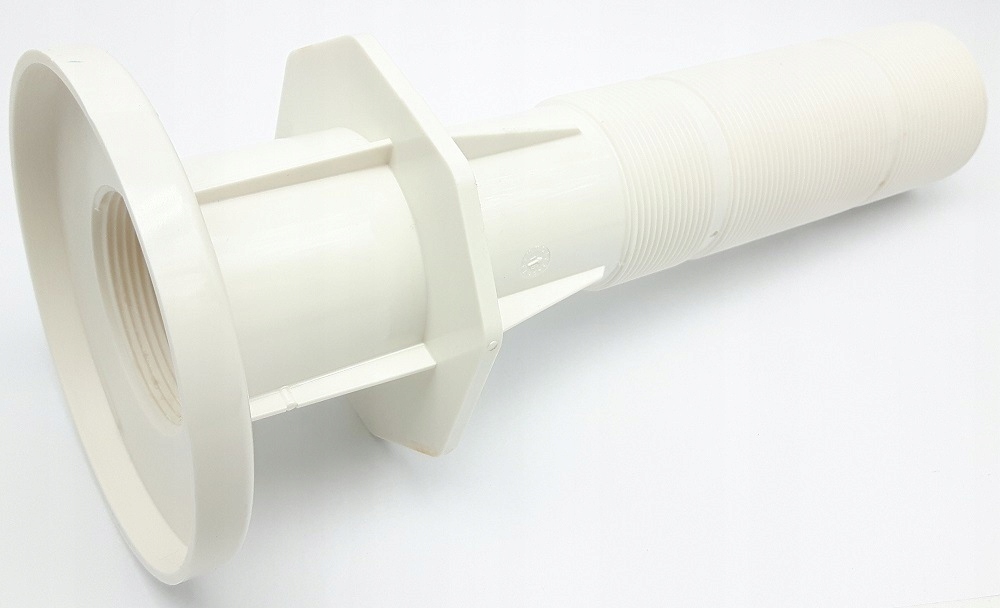 Крізь бетонну стінку басейну довжиною 300 мм для форсунок з внутрішньою різьбою 2” і Multiflow, підключення до різьбової труби зовнішня 2” або внутрішня труба 50 мм. Восьмигранний перехідний комір з максимальним діаметром 110 мм. Втулку можна вкоротити в залежності від товщина стінки басейну. Виготовлений із білого ABS-пластику. В підкріпленні Втулка має отвори для проводки втулки для посилення стінки басейну. Наконечник рукава дозволяє вставляти насадку в фольгу і запобігає його скручування. У стінці басейну видно лише власний носик. Ціна вказана за 1 пропуск. Водопропускні труби підходять для басейнів фольгований або збірний.
