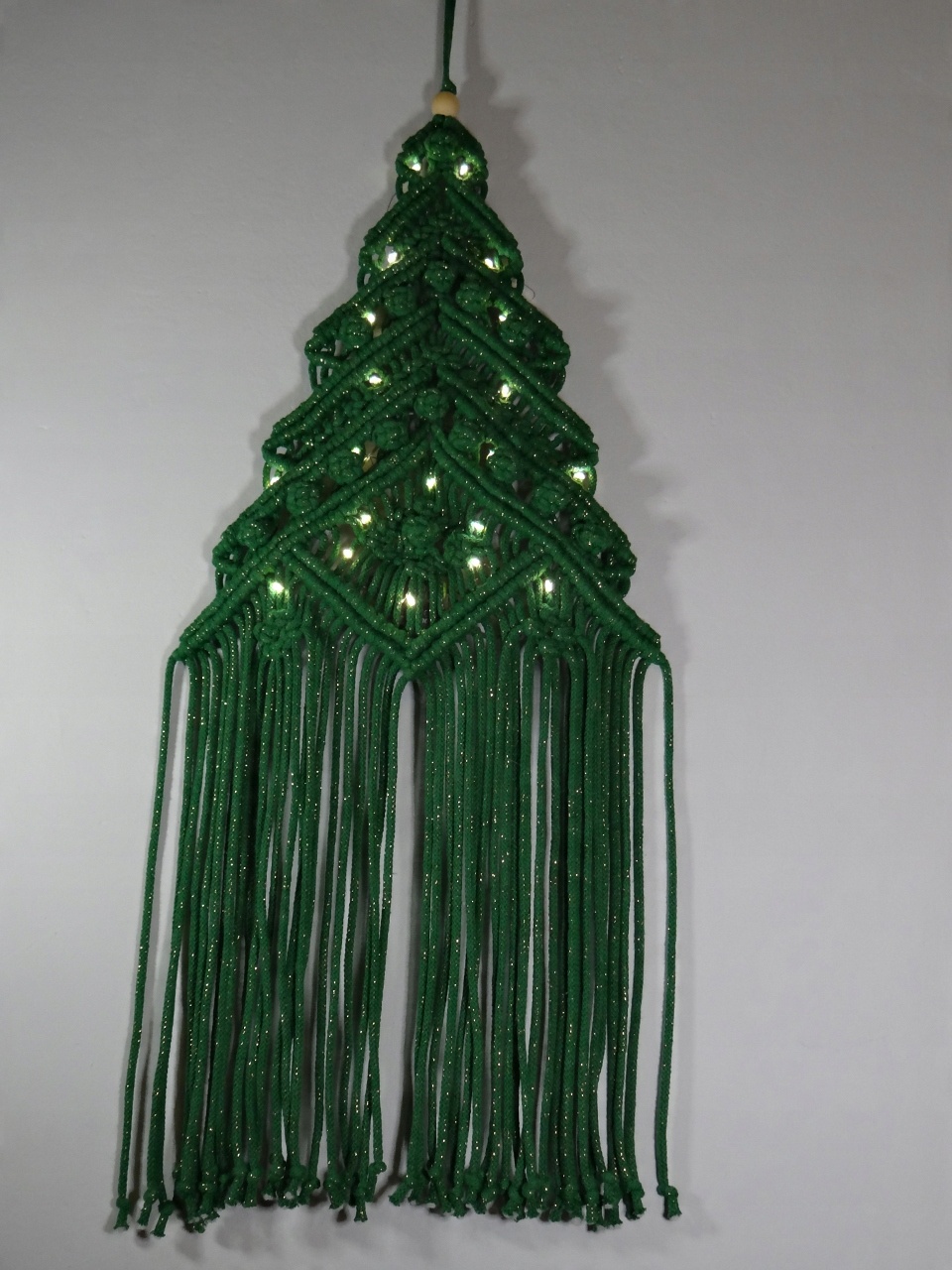 Макраме - настінні прикраси, BOHO, ялинка, новорічна, з вогнями