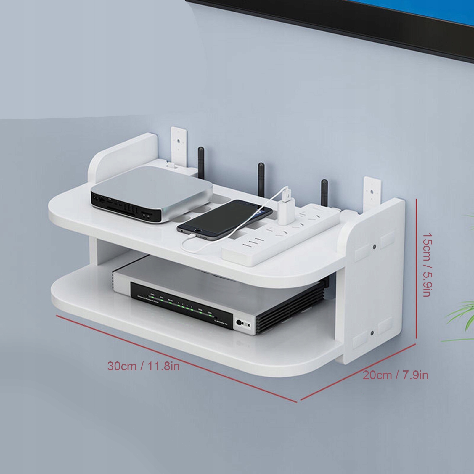 1. Безкоштовно: полиця для маршрутизатора забезпечує надійне рішення для зберігання маршрутизатора на стіні, що усуває необхідність пробивати отвори, які пошкоджують стіну