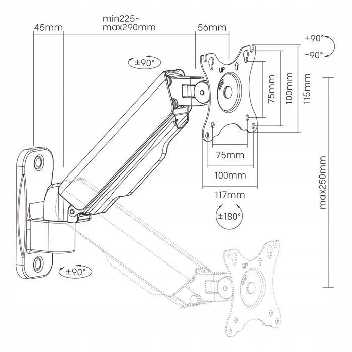 Тримач забезпечує надійне кріплення вашого монітора, пропонуючи довговічність, елегантність і надійне кріплення на будь-якій стіні.