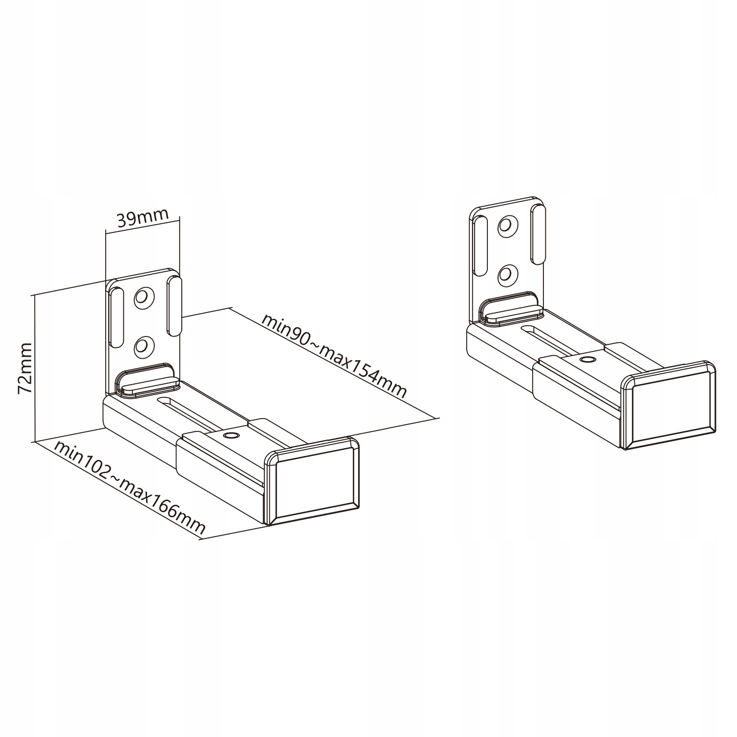 Універсальний тримач для саундбарів із регульованою глибиною від мін. 9 см до макс. 15,4 см. Підходить для всіх популярних звукових панелей. Кронштейни також можна використовувати для настінного кріплення 2 акустичних боксів глибиною від 9 до 15,4 см. Кронштейни забезпечують стійку установку на стіні. Загальне навантаження 15 кг. Гумова прокладка на опорах захищає динаміки від подряпин.