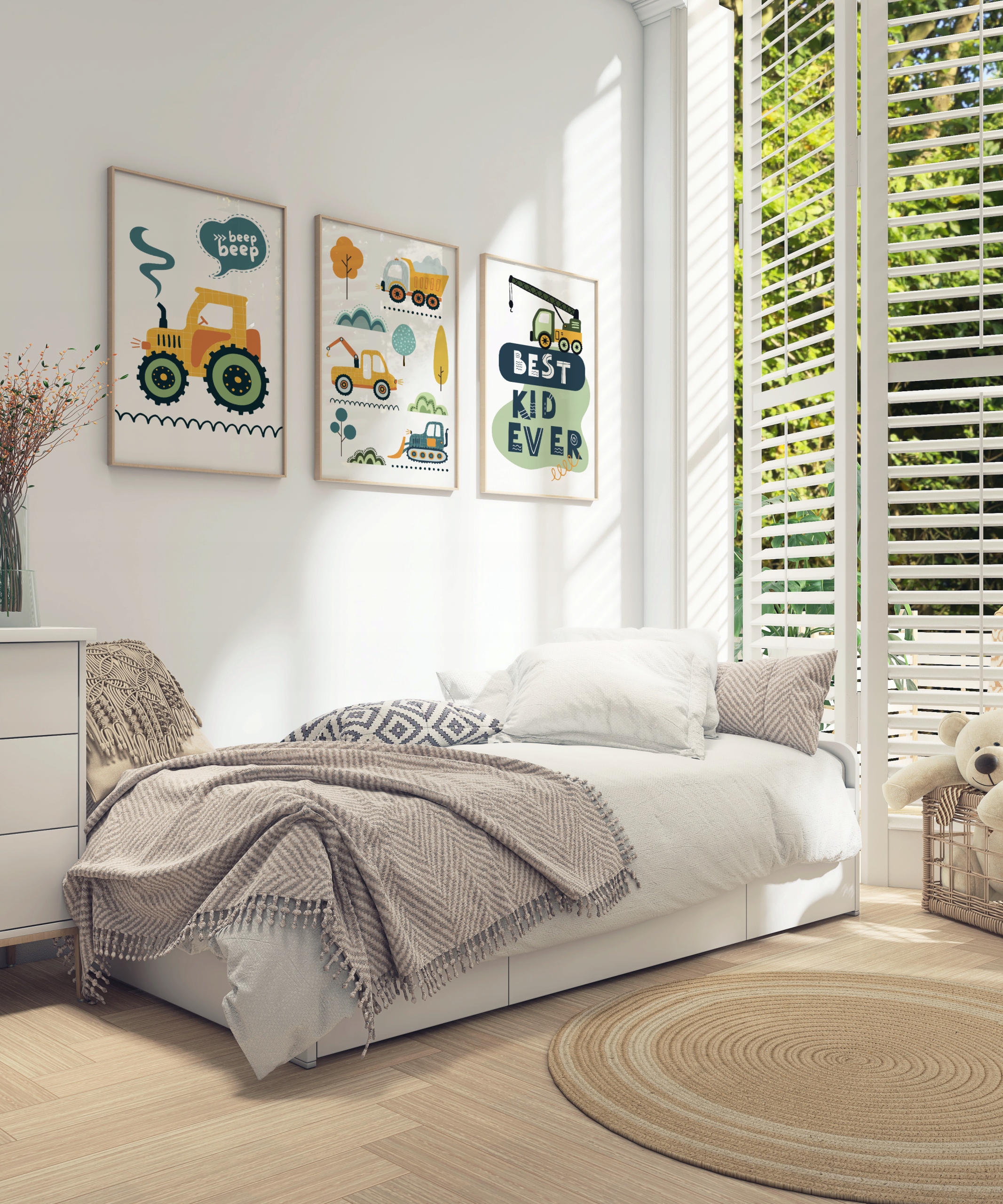 - Транспорт, машинки, машинки - тема, яка зазвичай подобається хлопцям. Ці постери можна використовувати як у кімнаті маленького дошкільника, так і дитини старшого віку, захопленої технікою.