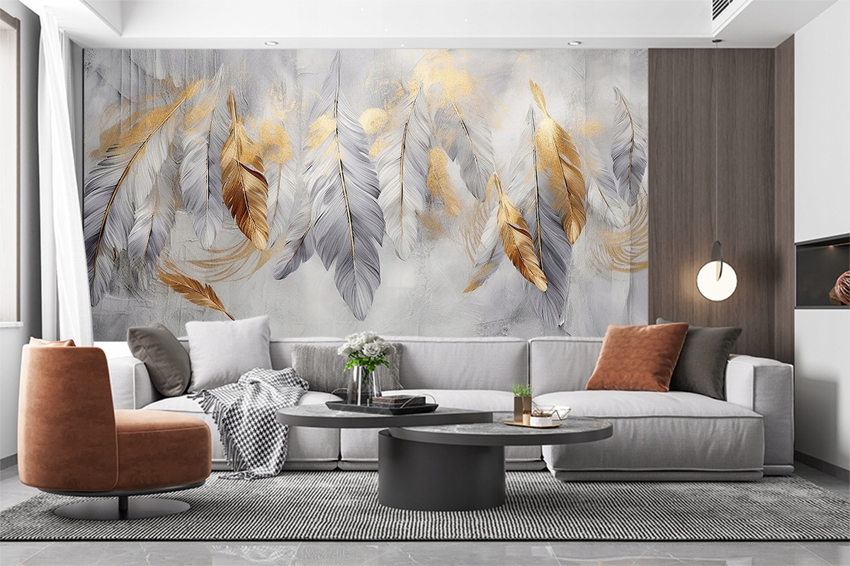 Настінні фрески пір'я квітки пальмові листя візерунки джунглі #