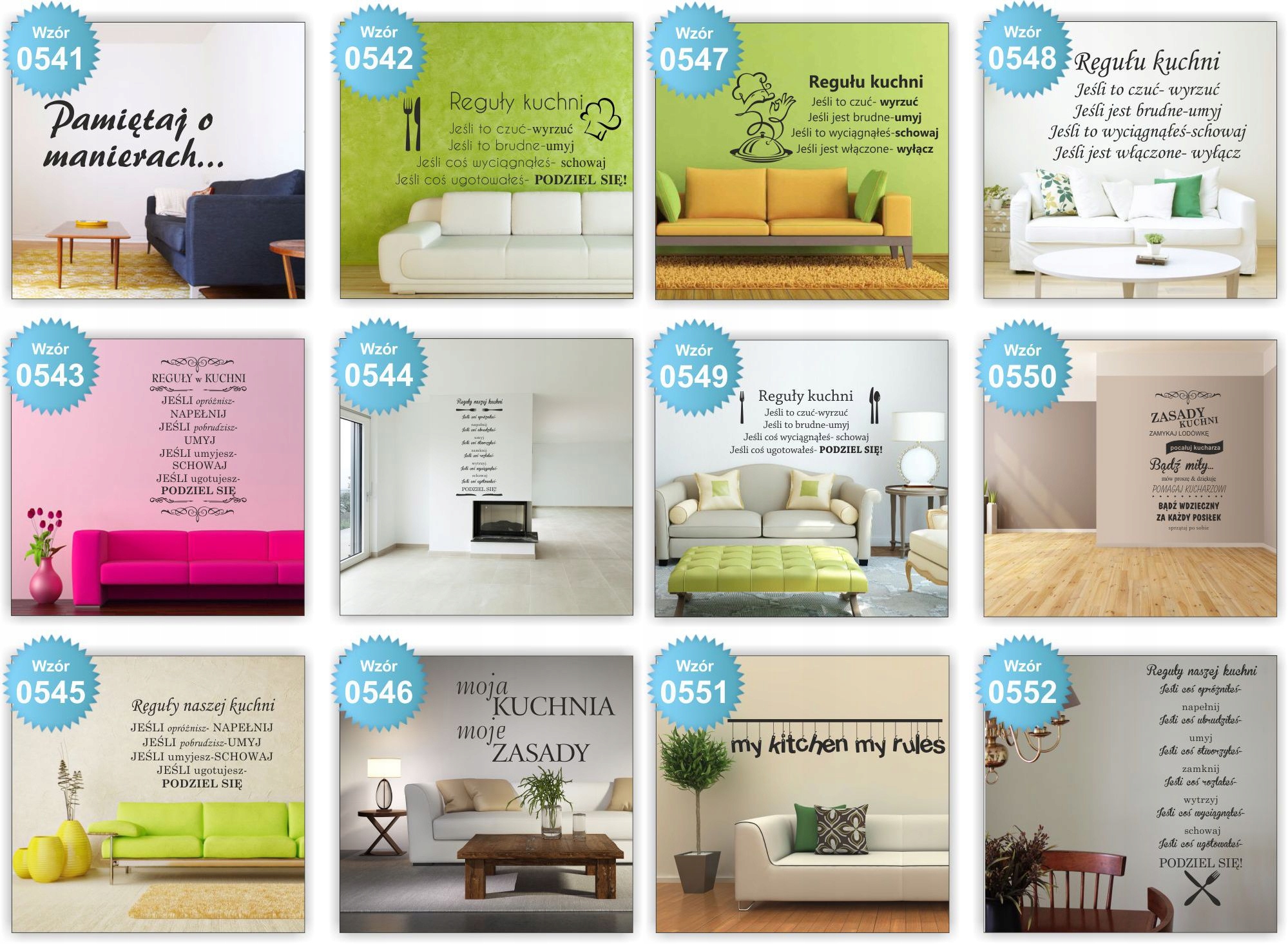 - Наклейки, призначені для того, щоб дотримуватися всіх плоских поверхонь (стін, вікна, дзеркала, шафи, холодильник, ліжка, меблі, машини)