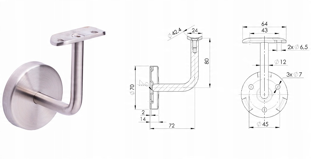 Опора поручня має маскувальну розетку для кріплення до стіни та 3 отвори для кріплення, завдяки чому поручень після встановлення є дуже стійким.