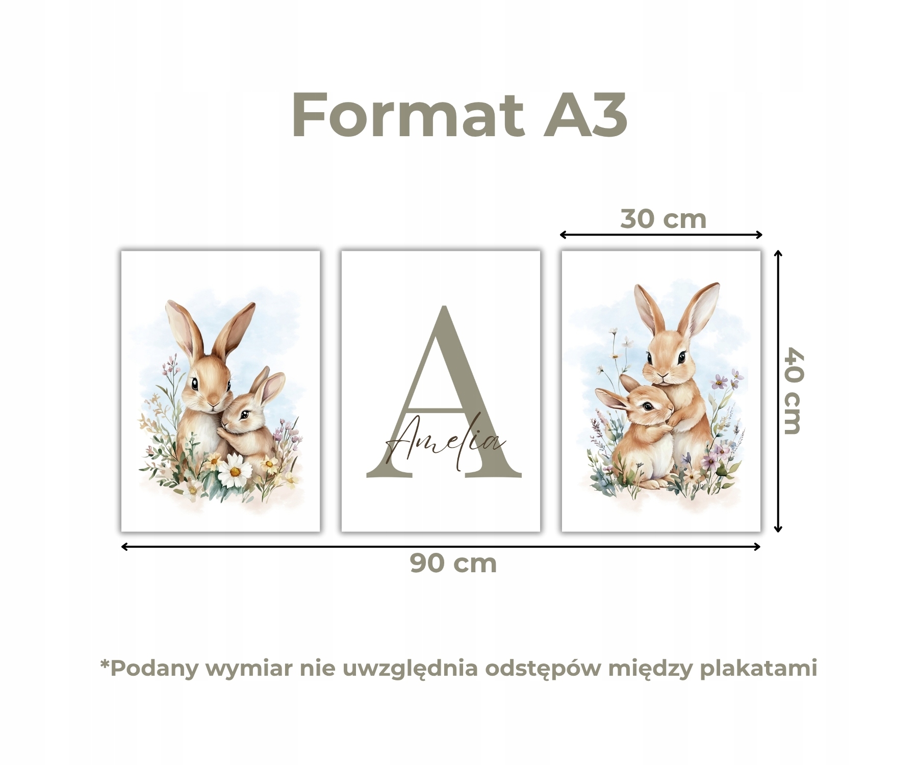 НАСТІННІ ПЛАКАТИ ДИТЯЧІ ДЛЯ КІМНАТИ НАБІР ПЛАКАТІВ КРОЛІКІВ 3 А3