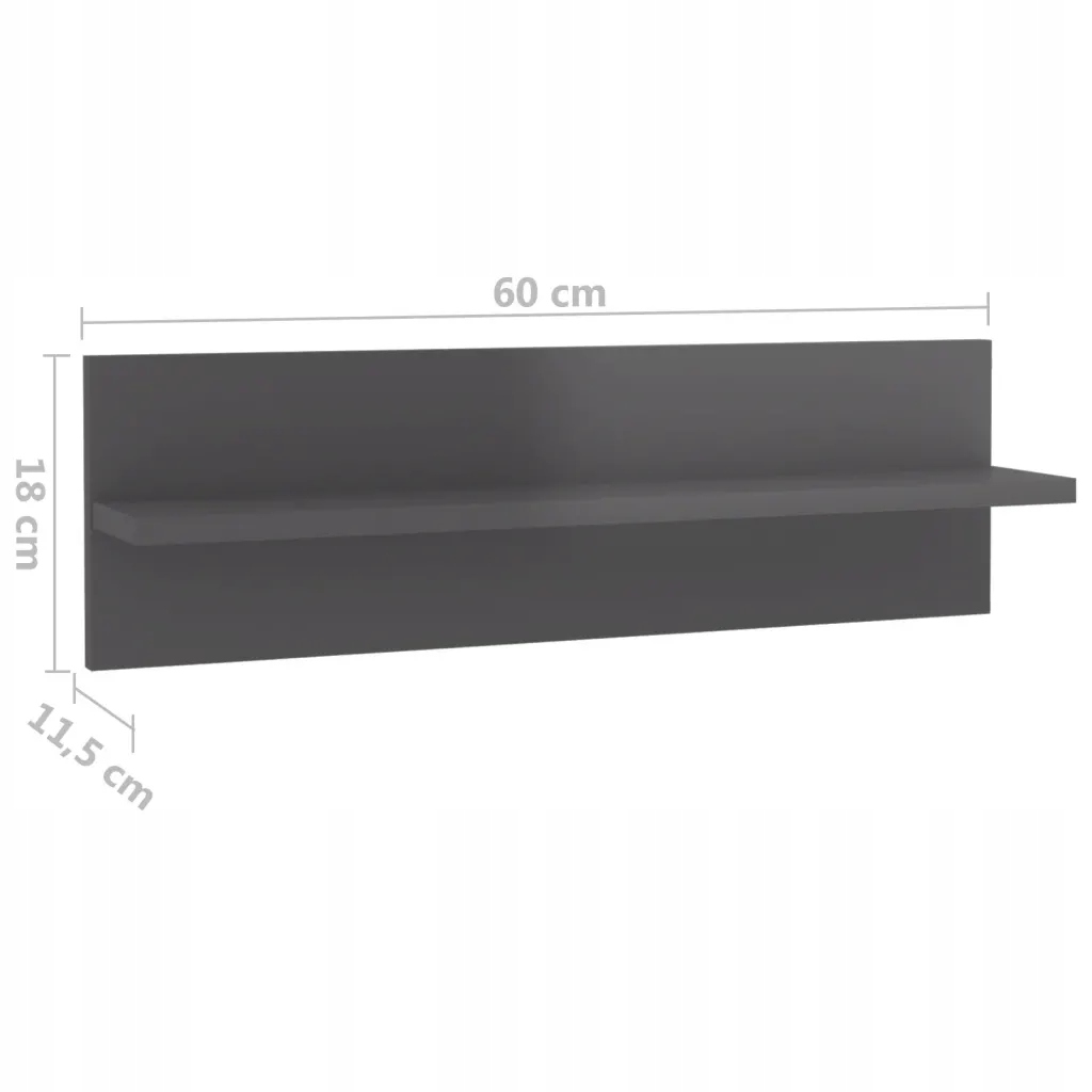 Полиці настінні, 4 шт., сірий глянець, 60х11,5х18, дошка