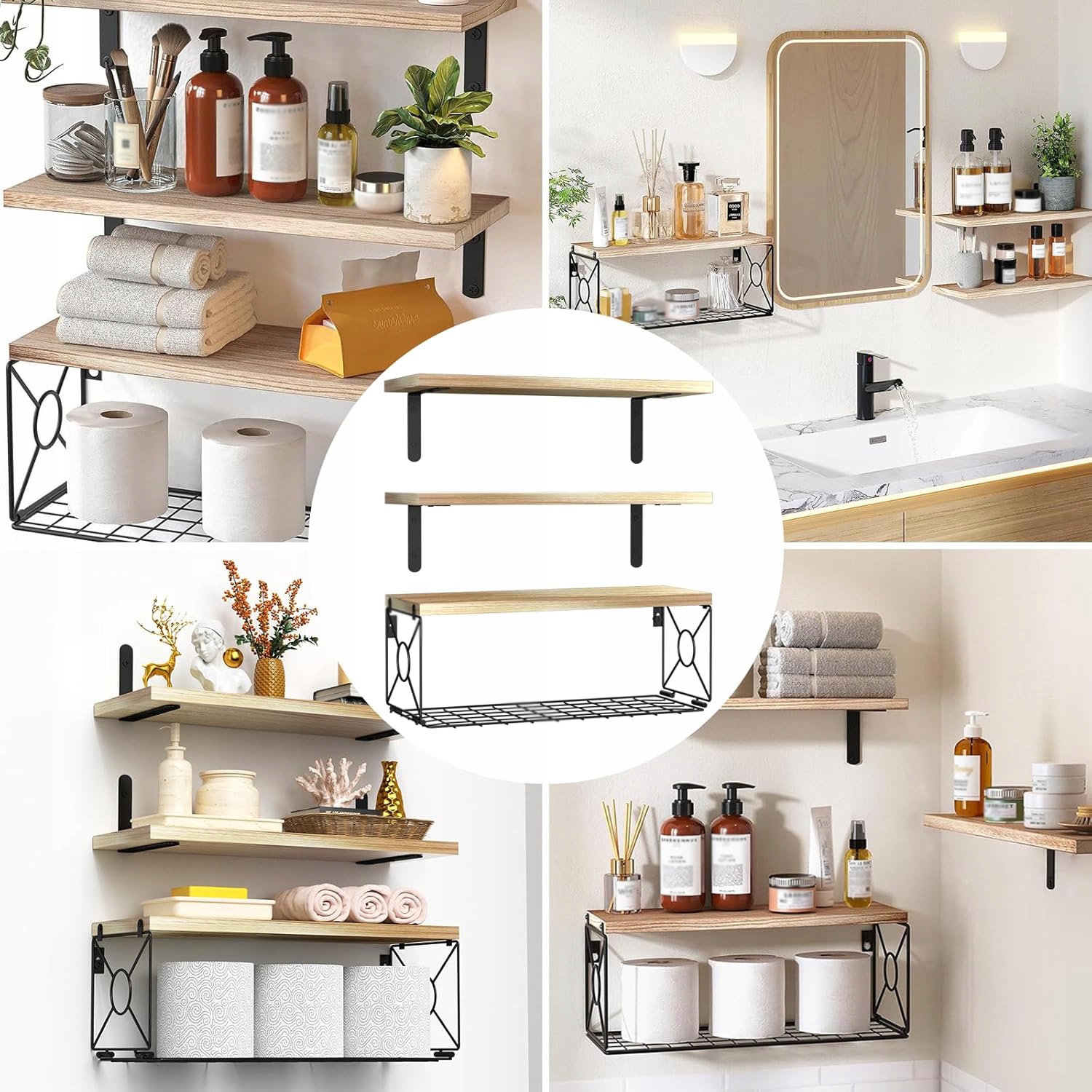 Незалежно від того, чи хочете ви організувати ванну кімнату, кухню, спальню, вітальню чи домашній офіс, на цих підвісних полицях із кошиками для зберігання все буде організовано елегантно та стильно. Ви можете розмістити ці підвісні полиці вертикально на стіні залежно від ваших потреб або сконфігурувати їх як кутові полиці відповідно до ваших потреб.