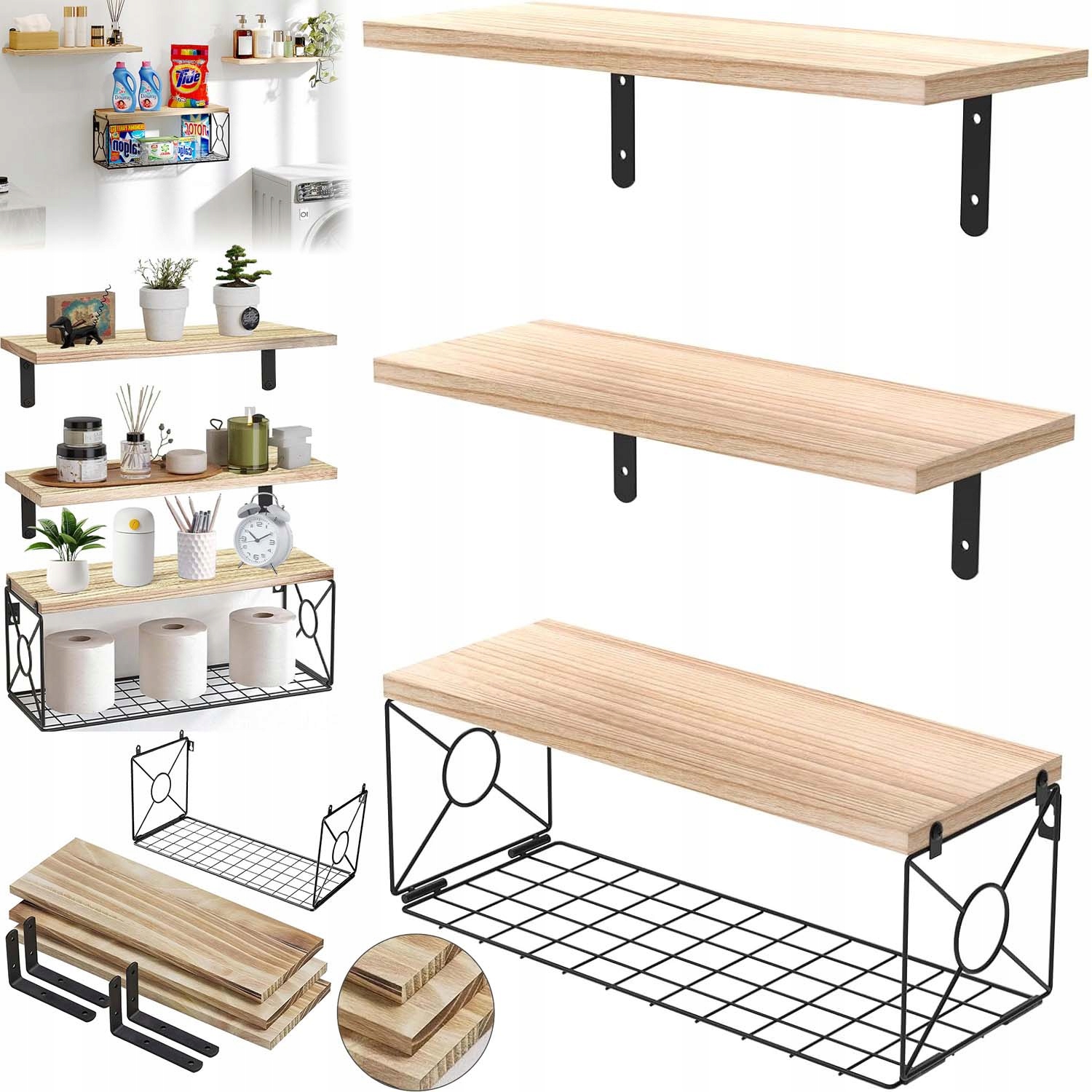 ⚜️⚜️ПІДВІСНІ ПОЛИЦІ З ДРОТЯНИМИ КОШИКАМИ ДЛЯ ЗБЕРІГАННЯ, ПОЛИЦІ З ДЕРЕВИНИ ПАВЛОВНІЇ ДЛЯ ОРГАНІЗАЦІЇ ДОМА ТА ОКРОСУВАННЯ СТІН, ПОЛИЦІ ДЛЯ ВАННОЇ/КУХНІ/ВІТАЛЬНОЇ/ОФІСУ, КОЛІР НАТУРАЛЬНИЙ⚜️⚜️