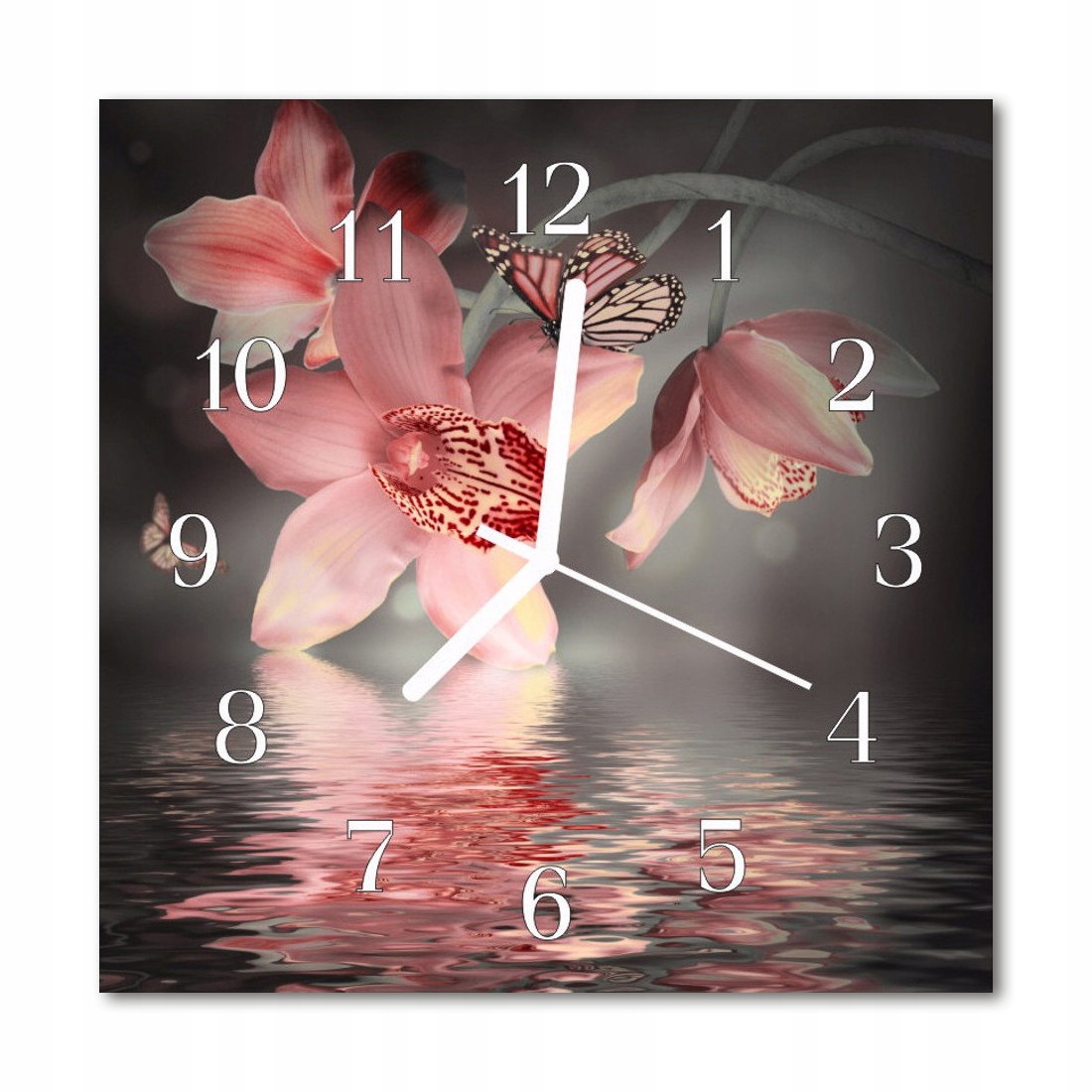 Тихий скляний настінний годинник із квітами орхідеї