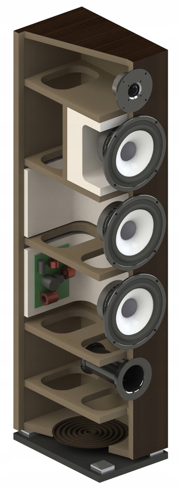 Використання трьохсмугового поділу смуги частот дозволило використовувати спеціалізовані низькочастотні та середньочастотні динаміки. Такий поділ «завдань» дозволив оптимізувати кожен із вищезгаданих гучномовців для їх функції та усунути обмеження, характерні для низькочастотних гучномовців, які використовуються в двосмугових системах. Кросовери для гучномовців були розроблені з використанням сучасних передових програм і систем проектування та вимірювання, таких як "CLIO" від AUDIOMATICA. Особливу увагу було приділено тестам на прослуховування, зокрема акустичній інтеграції перетворювачів, яка безумовно впливає на звукову сцену та стереоефект. Було проведено багато сеансів прослуховування, під час яких на основі думок тестувальників вибирався оптимальний дизайн.