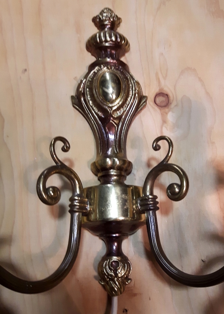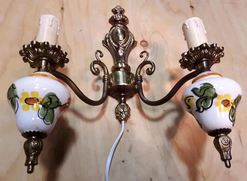 НАСТІННИЙ 2-ТОЧКОВИЙ СВІТИЛЬНИК З ЛАТУНІ ТА ФОРФОРУ