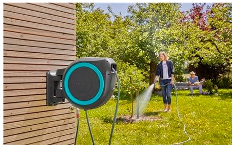 Зручний і практичний спосіб зрошення більших садів за допомогою стінового барабана M/L. приємно. Цей настінний барабан економить користувачів, що втомлюють прокатку та розстебнуту шланг та брудні руки. Барабан, прикріплений до будь -якої стіни, забезпечує безпечне та щадне зберігання шланга. Щоб почати поливати, просто витягніть потрібну кількість шланга 25 метрів. Як тільки ми перестаємо тягнути за шлангом, замок встановлений на дуже короткі проміжки часу, зупинить його, блокуючи його. Практичне кріплення стін дозволяє барабану обертатися в діапазоні 180 °, щоб він рухався з користувачем. Таким чином ви можете легко зволожувати сад, зберігаючи максимальну свободу руху та уникаючи зміїної добавки. Приховування шланга не вимагає згинання або ручної обмотки: просто легкий потяг, щоб сповільнити блок. Високоякісна сталева пружина всередині барабана вітає шланг автоматично, рівномірно та надійно. Інноваційна технологія RollControl забезпечує безпечний та контрольований процес обмотки. Побудований направляючий запобігає скручувати або доповнити шланг під час прокатки, протидіючи його пошкодженню. Швидкі роз'єми та підключення до крани з оригінальною системою Gardena дозволяють розширити змію та прикріпити до неї інші аксесуари для зрошення Гардена. Для того, щоб Гардена розпилював кінчики завжди під рукою, їх можна розмістити під стіною, що кріпиться на стіні, зберігаючи там для економії місця. Матеріал високої якості захищений від таких атмосферних факторів, як УФ -випромінювання або мороз, завдяки якому барабан може використовуватися протягом року. Барабан має захист від крадіжок. Включений барабан, користувач отримує всі необхідні кріплення: кріплення стін, шланг з'єднання, усі необхідні елементи оригінальної системи Gardena та монтажні деталі, а також спринклер з двома варіантами потоку води. Gardena надає п’ятирічну гарантію цього барабанного шланга високої якості.