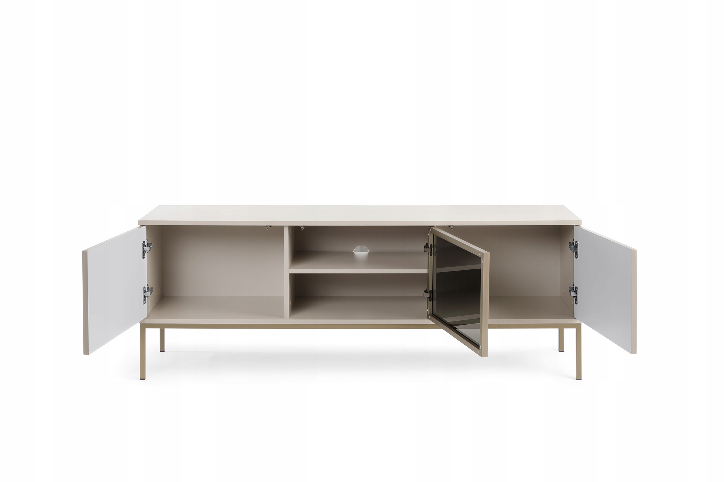 Фронти виглядають надзвичайно ефективно завдяки використанню mdf-u з товщиною 18 мм, , яка була забарвлена в масі і красиво представлена. Крім того, у передній частині є загартоване антизольне скло в кольорі 4 мм, оточений алюмінієвою рамою з товщиною 18 мм. Ця комбінація додає меблів унікального персонажа та підкреслює їх сучасний вигляд. Виготовлені з сталевих профілів з розмірами 18 x 18 мм, , які були пофарбовані порошок . Це не лише практичний елемент, але й дизайнерський акцент, який ідеально гармонізується з усіма меблями.