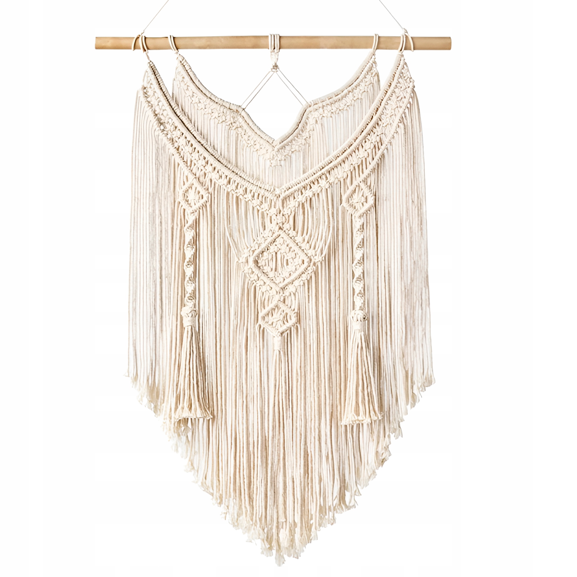Настінна прикраса макраме в стилі бохо — надзвичайно чарівний і унікальний декоративний елемент, який додати Ваш інтер'єр матиме неповторний характер. Виготовлене з увагою до деталей, ткане макраме кольору екрю вражає не лише своїм стилем, але й універсальністю. Підходить для різних приміщень, від вітальні, спальні до передпокою чи дитячої кімнати.