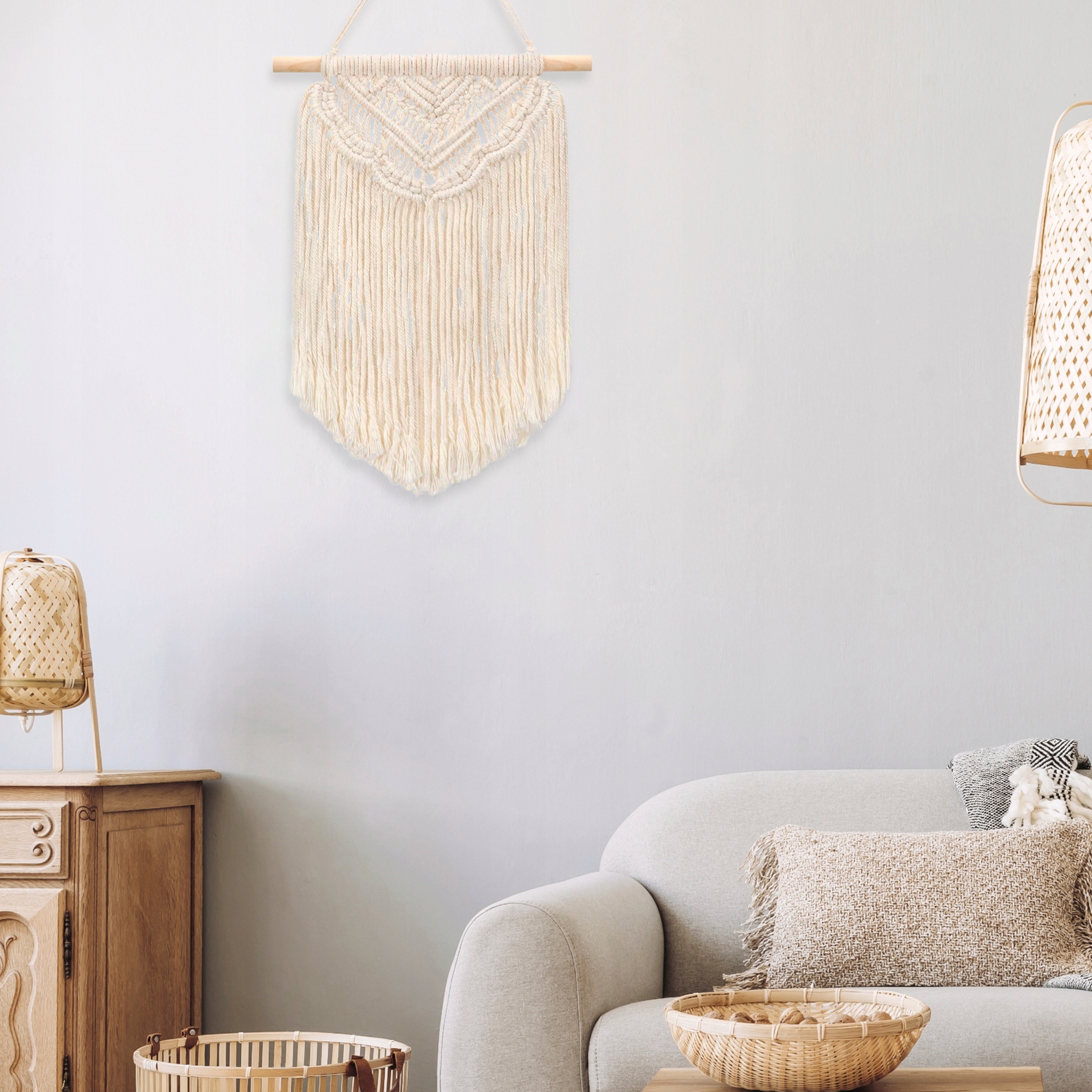 НАСТІННИЙ БОХО ДЕКОР МАКРАМЕ, НАТУРАЛЬНЕ ЕКРЮ