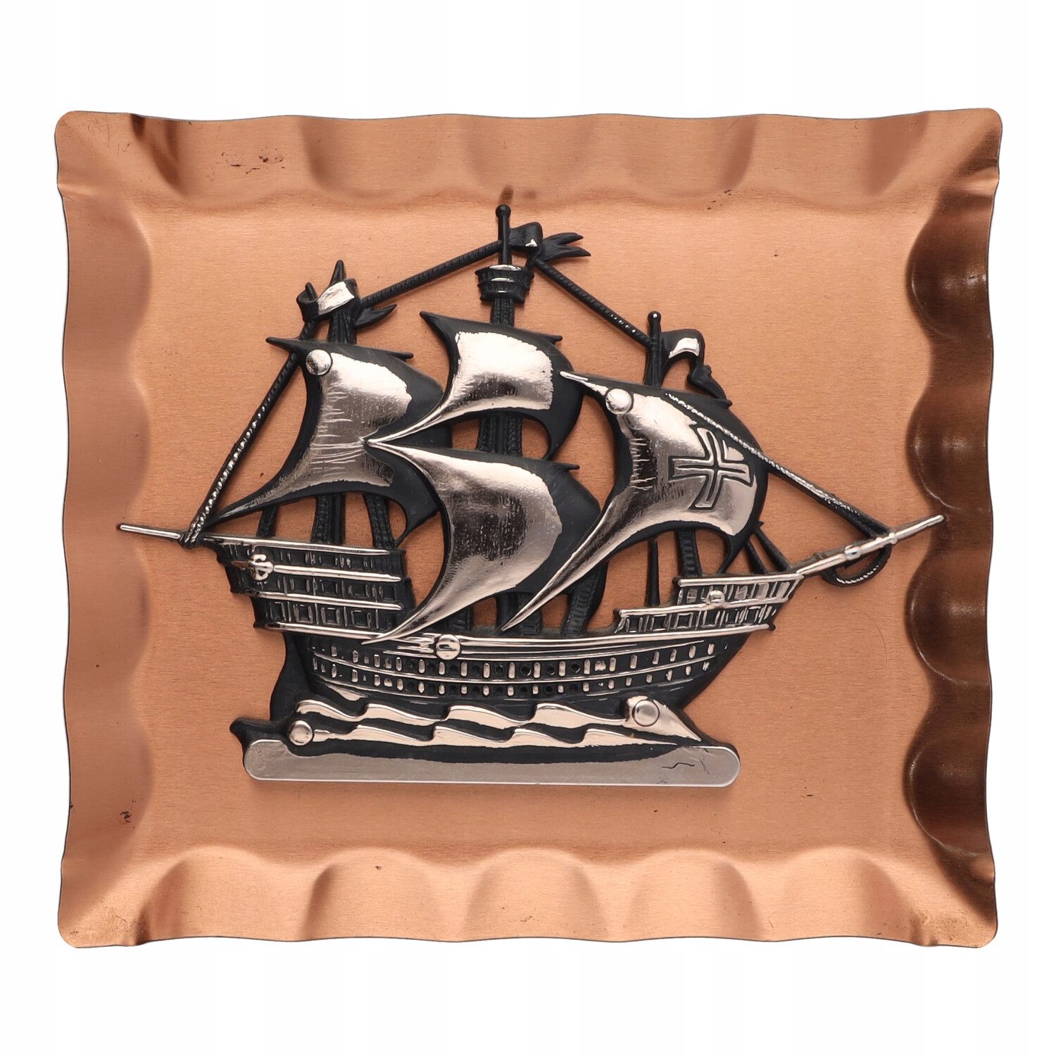 Настінний декор із тонкого листового металу та пластику із зображенням корабля, ймовірно, періоду Польської Народної Республіки. Незначні сліди використання. Розміри: 12,5 х 14 см. Рекомендую