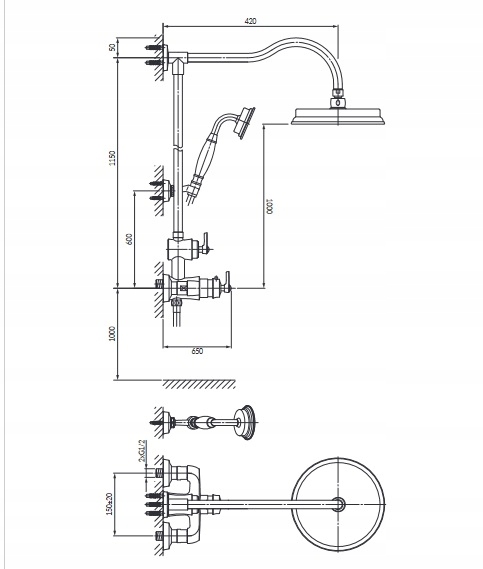 - тропічний душ з латуні, розмір: ø22,5 см, відстань від стіни: 42 см