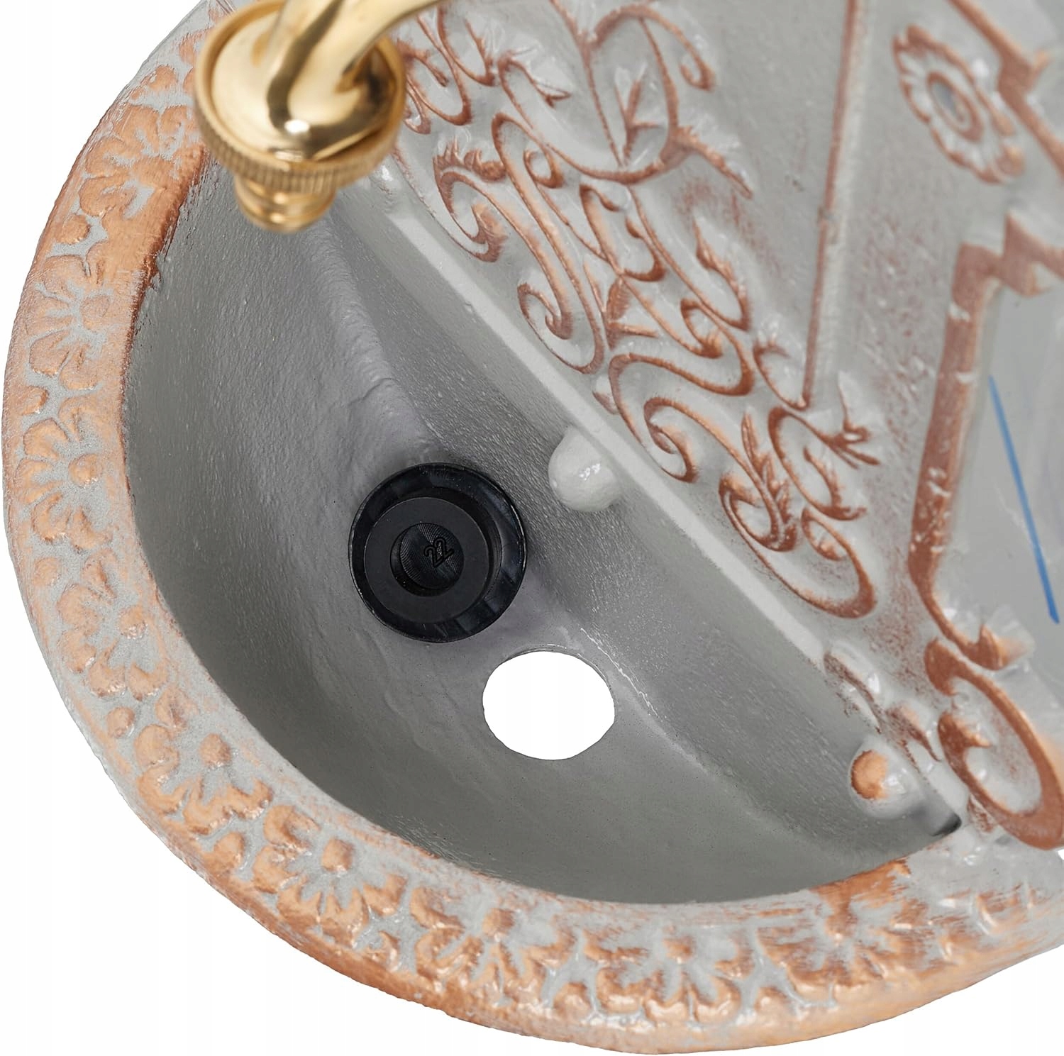 Настінний фонтан Relaxdays, антикварний дизайн, раковина та кран, для саду та патіо, 36 x 22 x 10,5 см, чавун, золото/сірий
