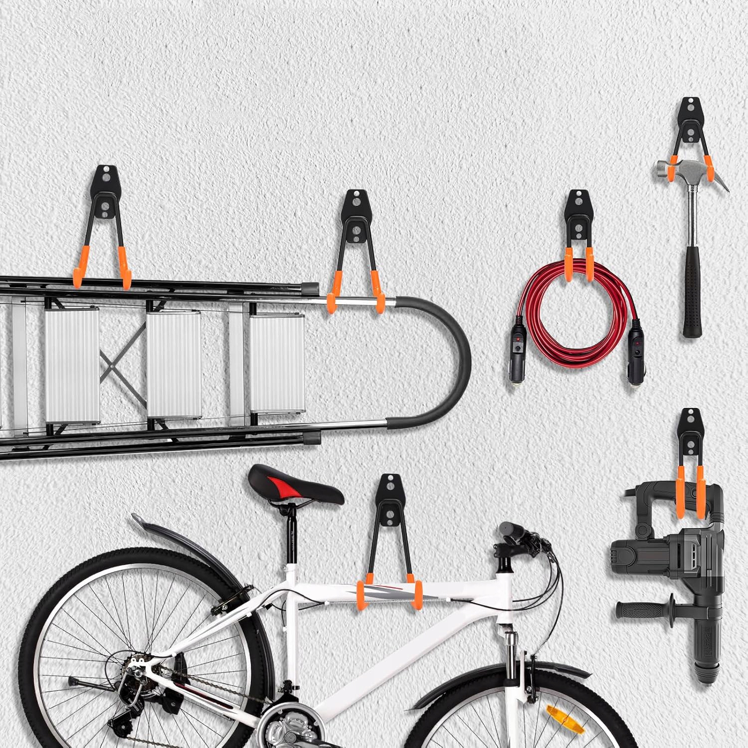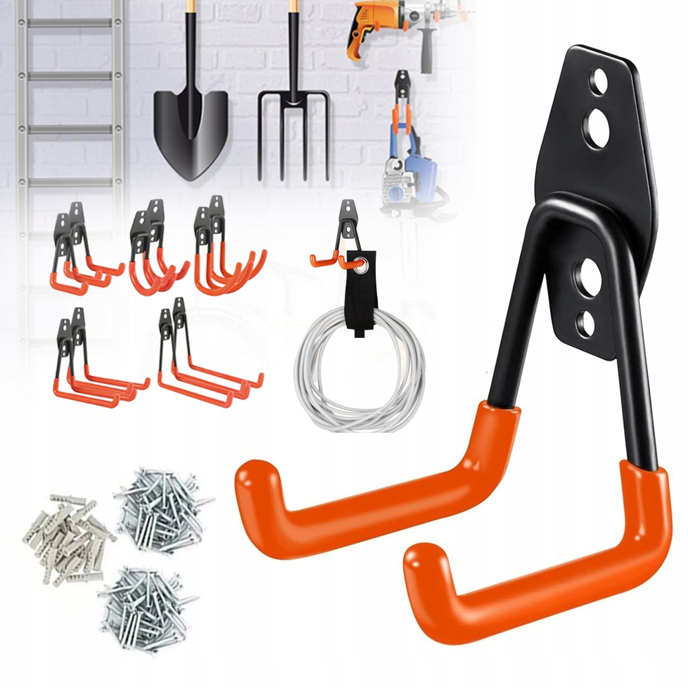 Ви можете повісити велосипеди, інструменти, водопровідні труби, зарядні пристрої, дошки для серфінгу та багато іншого у вашому гаражі. Будь ласка, зверніть увагу на стабільність цього гака, який може нести до 35 кг.