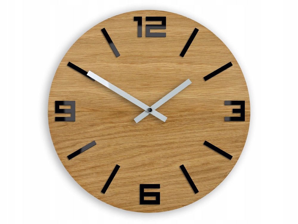 Настінний годинник виготовлено з деревини дуба товщиною 3 мм і плити МДФ товщиною 10 мм, прикрашений стрілками в красивий, яскравий колір, що надає йому дуже елегантного та шикарного характеру. У свою чергу, такий модний і популярний сьогодні дерев’яний годинник відсилає до природи та скандинавського стилю.