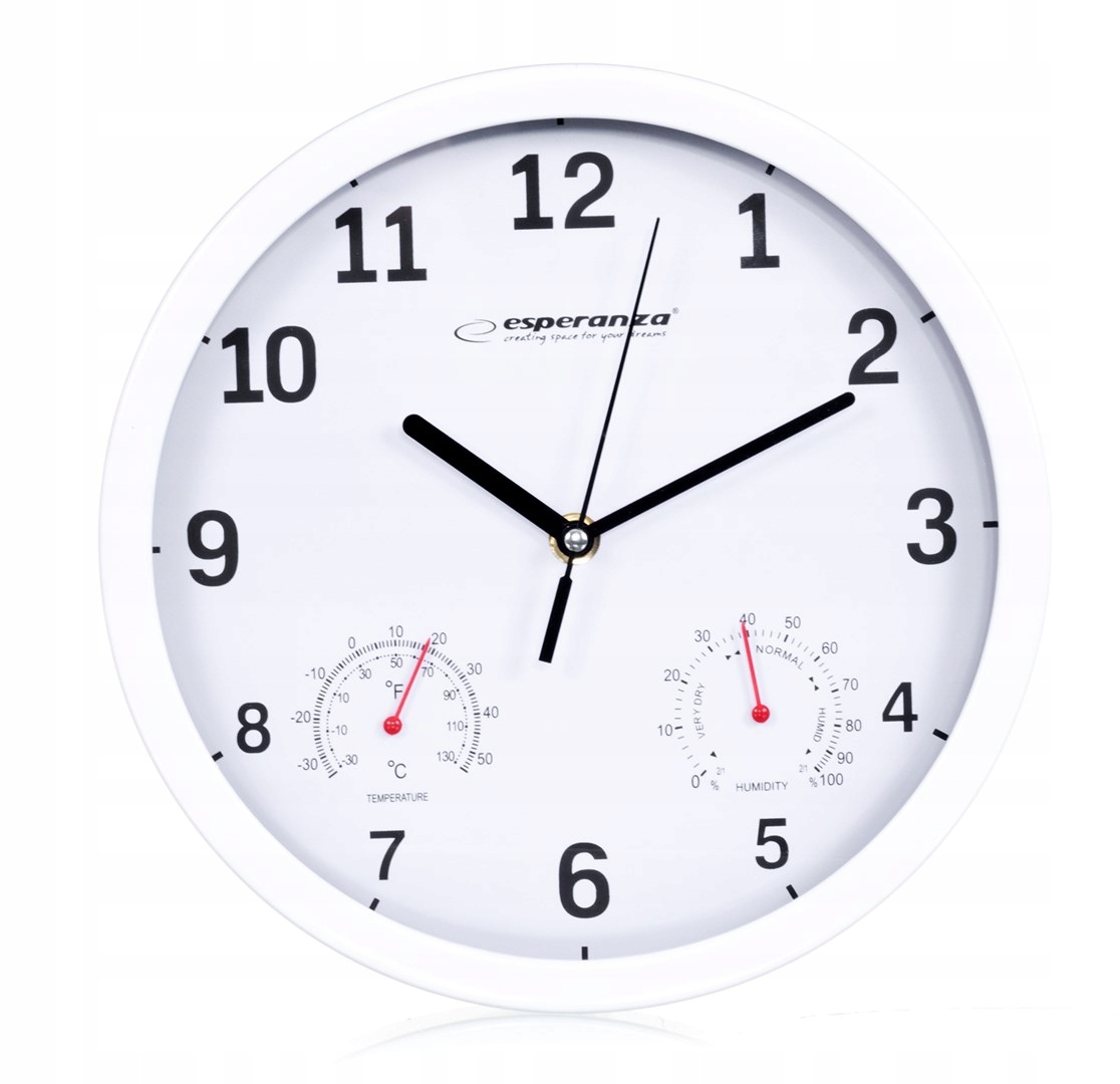 Настінні годинники Esperanza LYON EHC016W білі - це елегантний і функціональний годинник, який ідеально впишеться в будь-який інтер'єр. Він створений для тих, хто цінує не тільки точність показань, а й сучасний дизайн. Завдяки можливості вимірювання температури та вологості повітря цей годинник не тільки інформує про час, а й надає додаткову інформацію про навколишнє оточення. Виготовлений із міцних матеріалів, таких як пластик і скло, він характеризується високою якістю виготовлення. Його мінімалістичний дизайн білого зробить його ідеальним доповненням до будь-якого інтер'єру.