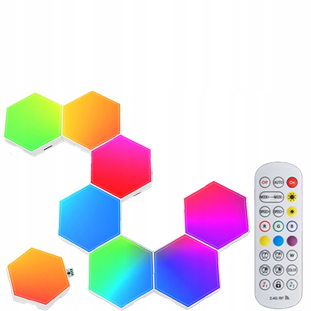 НАСТІННИЙ ІГРОВИЙ СВІТИЛЬНИК HEXAGON RGB, МОДУЛЬНИЙ, СИНХРОНІЗАЦІЯ + ПУЛЬТ 8 ШТ.