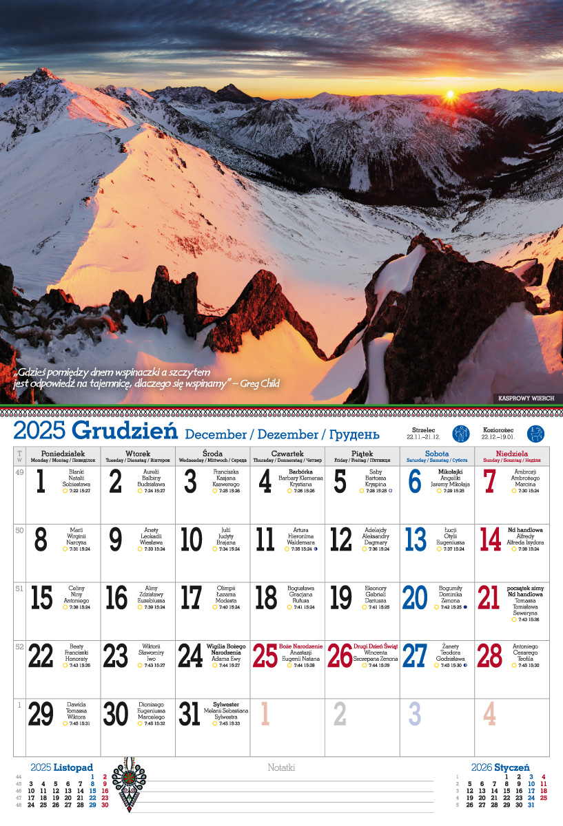 НАСТІННИЙ КАЛЕНДАР 2025 A3 TATRAS ЩО ЕЙ! ГОРИ МОРСЬКІ ОКО КАСПРОВИ