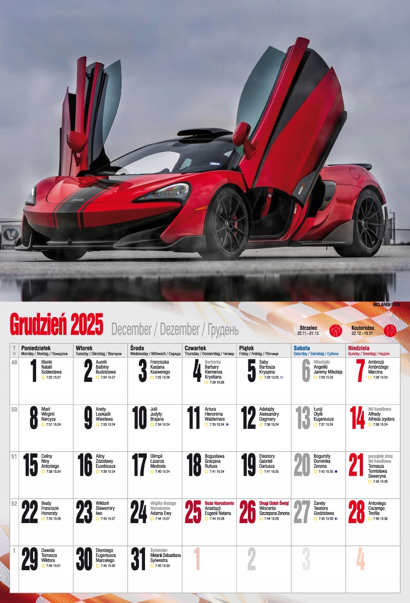 Настінний календар 2025 Super Cars спортивні машини 32x47