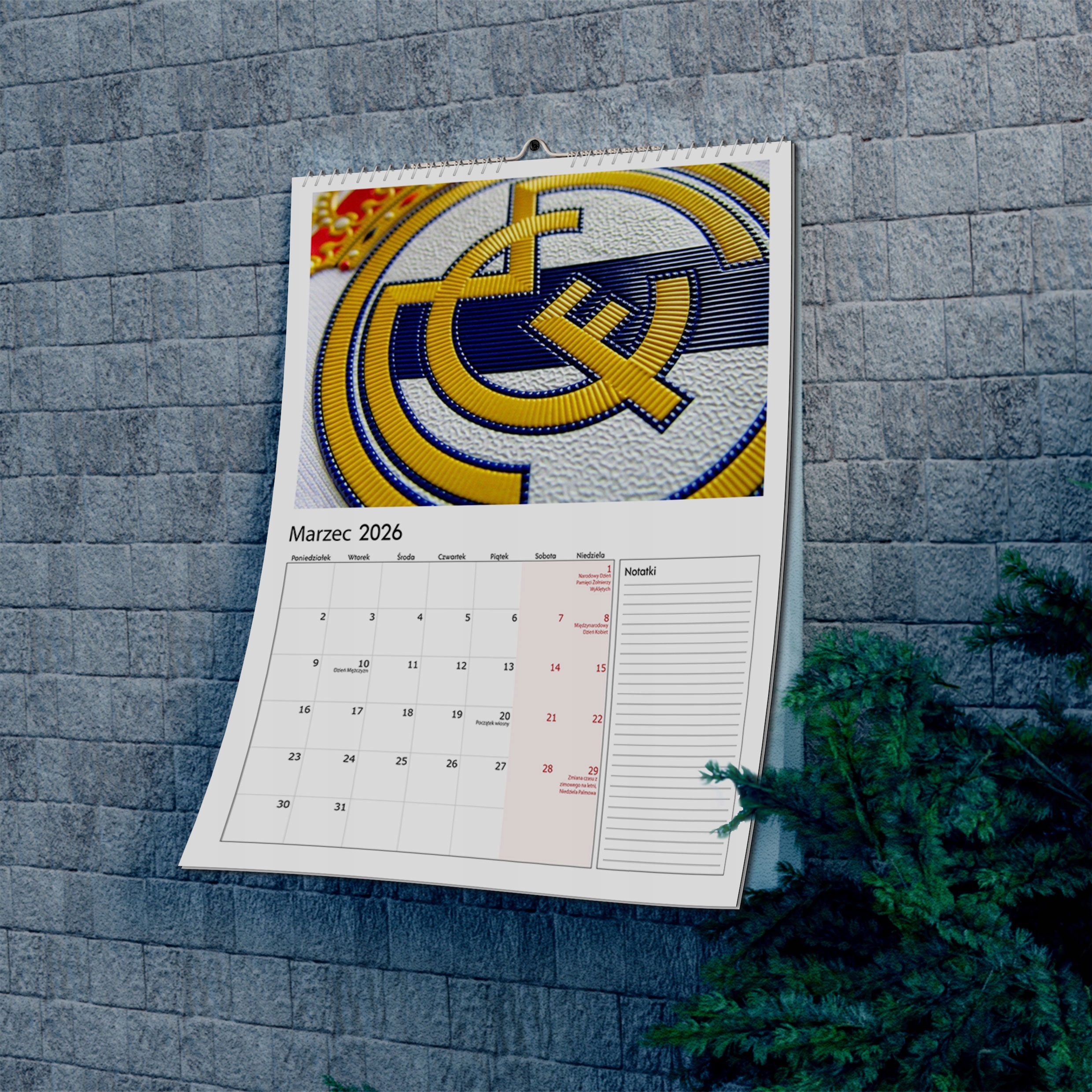 НАСТІННИЙ КАЛЕНДАР 2026 МУЛЬТИДОШТОВИЙ ВЕЛИКИЙ М'ЯЧ З ЛОГОТИПОМ РЕАЛ МАДРИД МАДРИТ А3