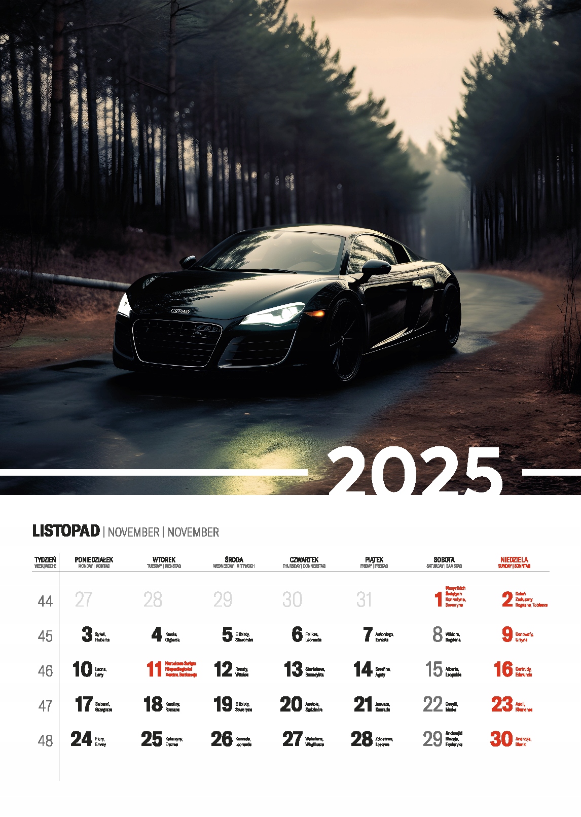 Настінний календар CARS - календар А3 13 карток з автомобілями Sam1