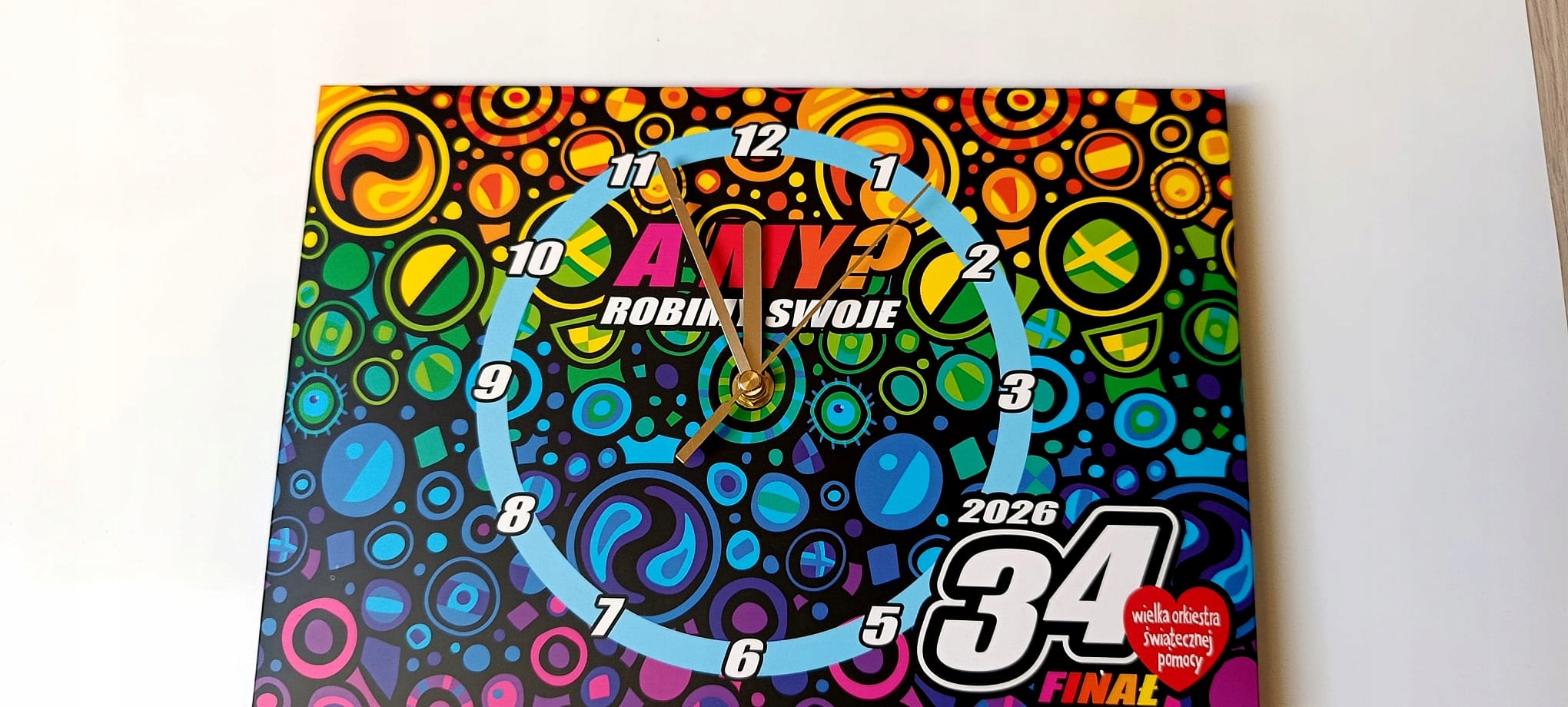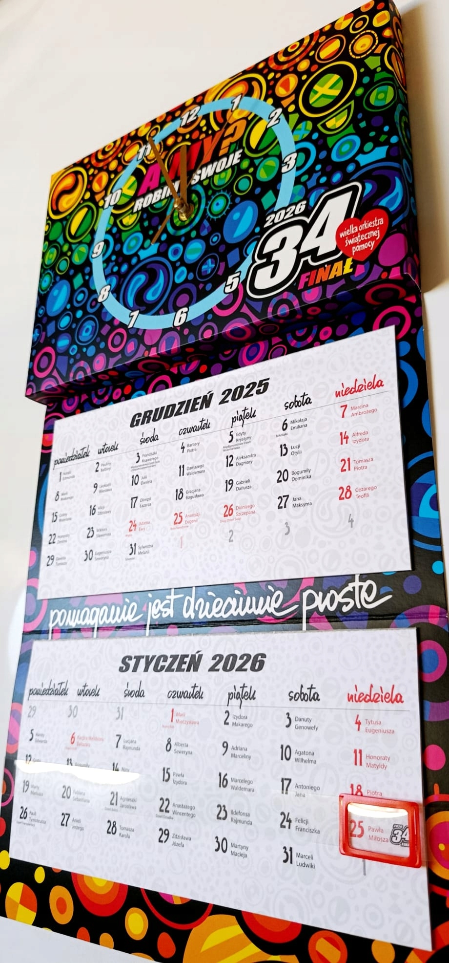 Предметом аукціону є оригінальний настінний календар WOŚP на 2025/2026 роки з вбудованим годинником - унікальний гаджет, підготовлений до нагоди 34. Фінал Великого оркестру різдвяної благодійності.